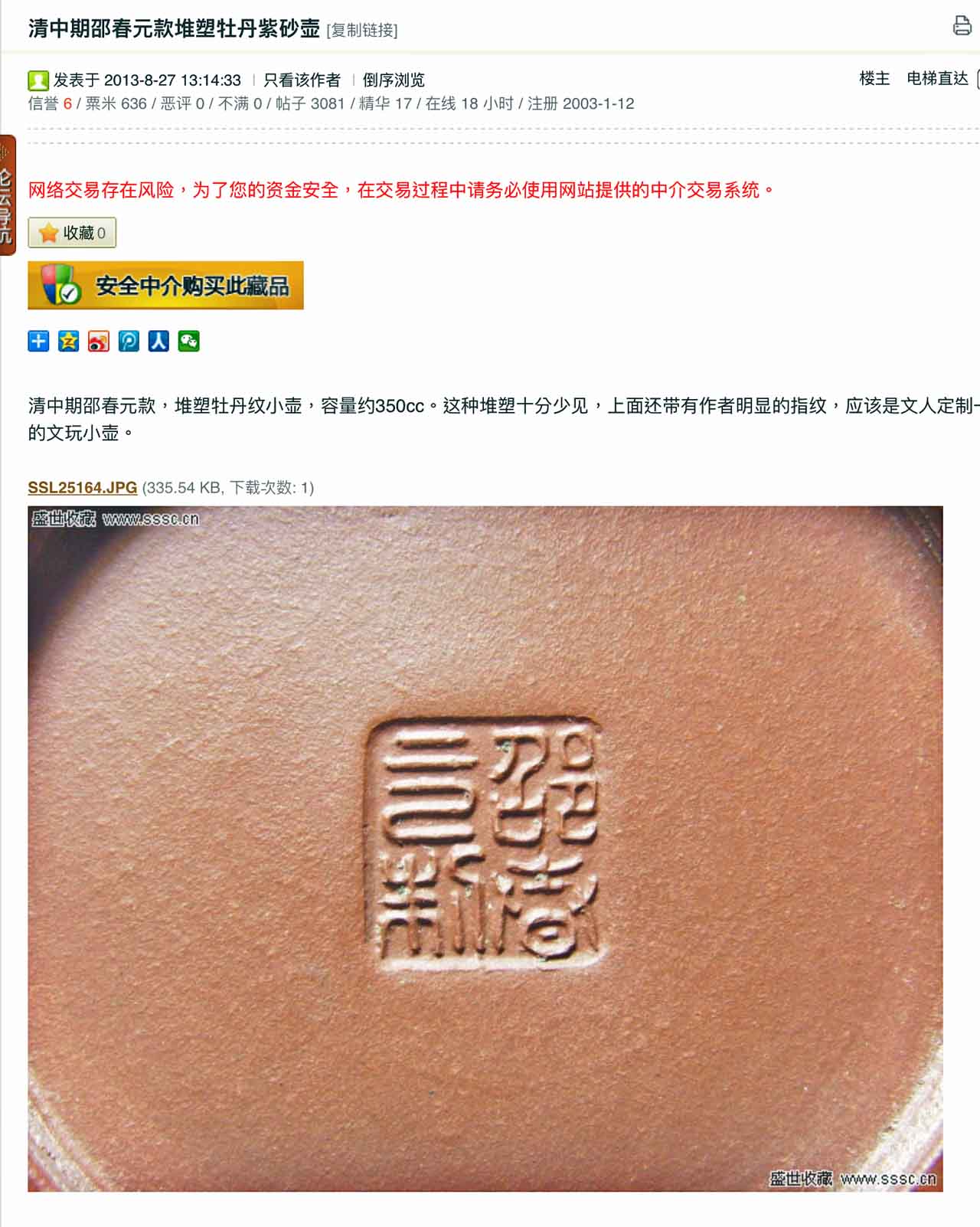 曾經看到過的「邵春元製」篆印款有兩種,都有對與有的可疑,因為數十年前宜興曾經有人仿製過。