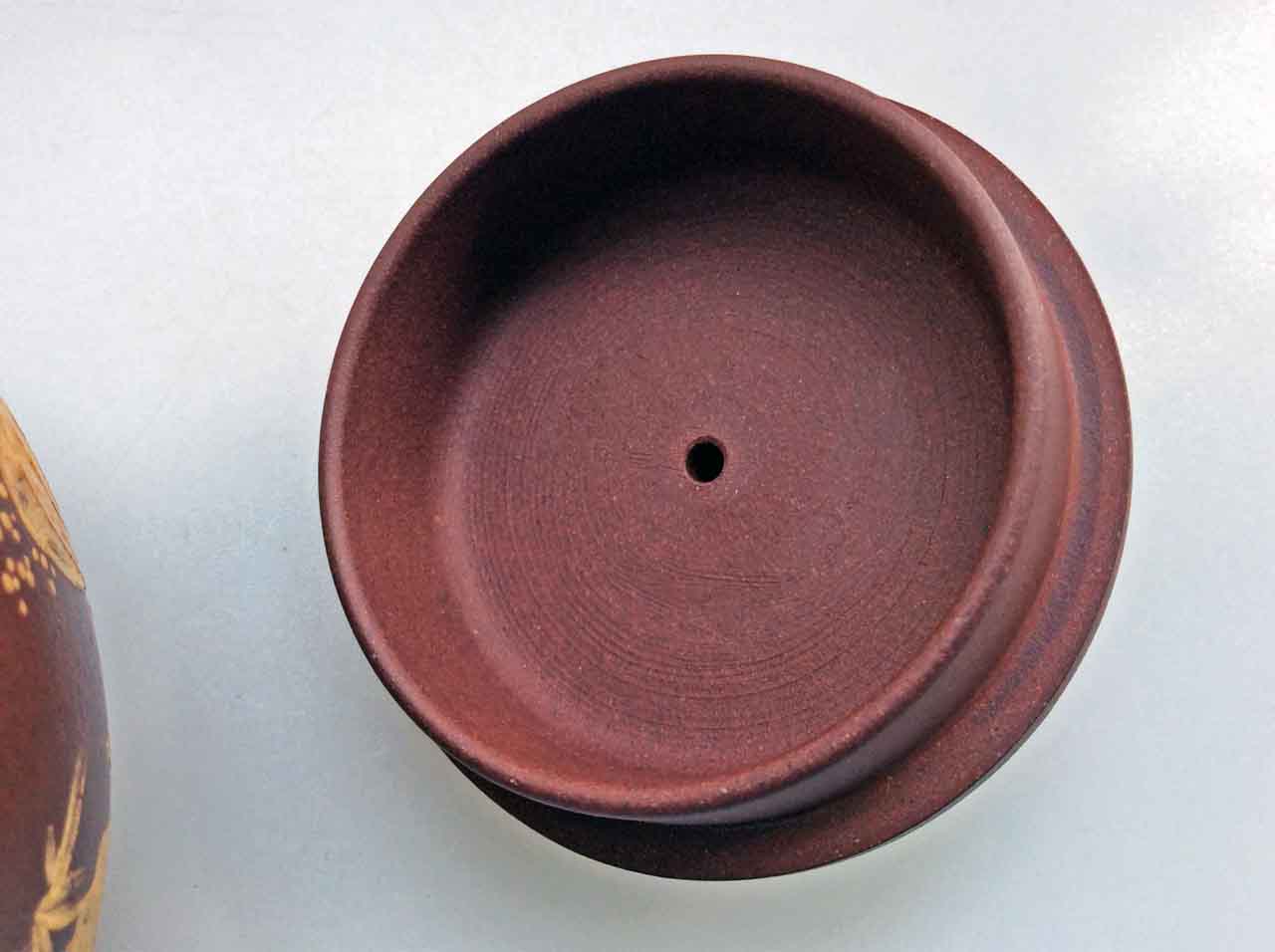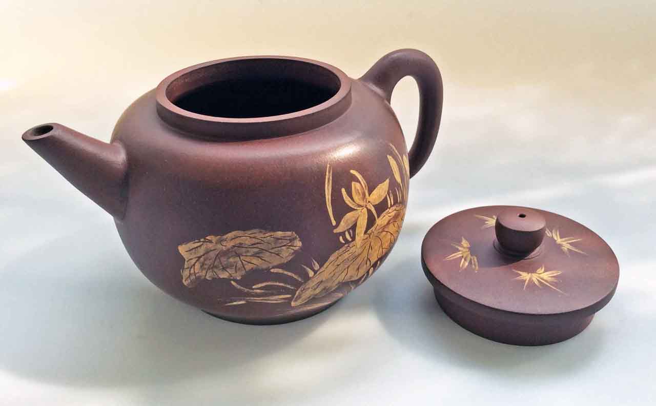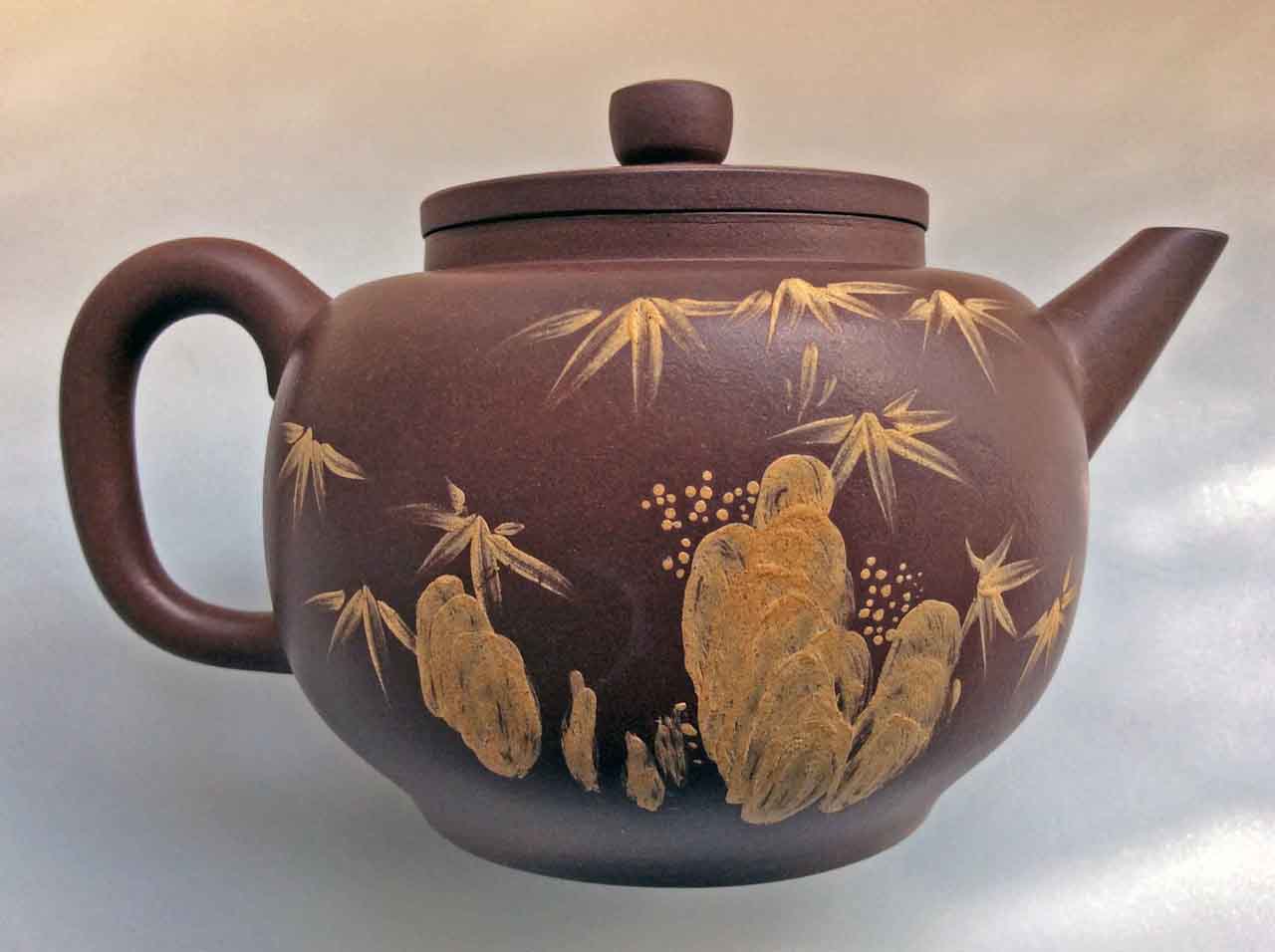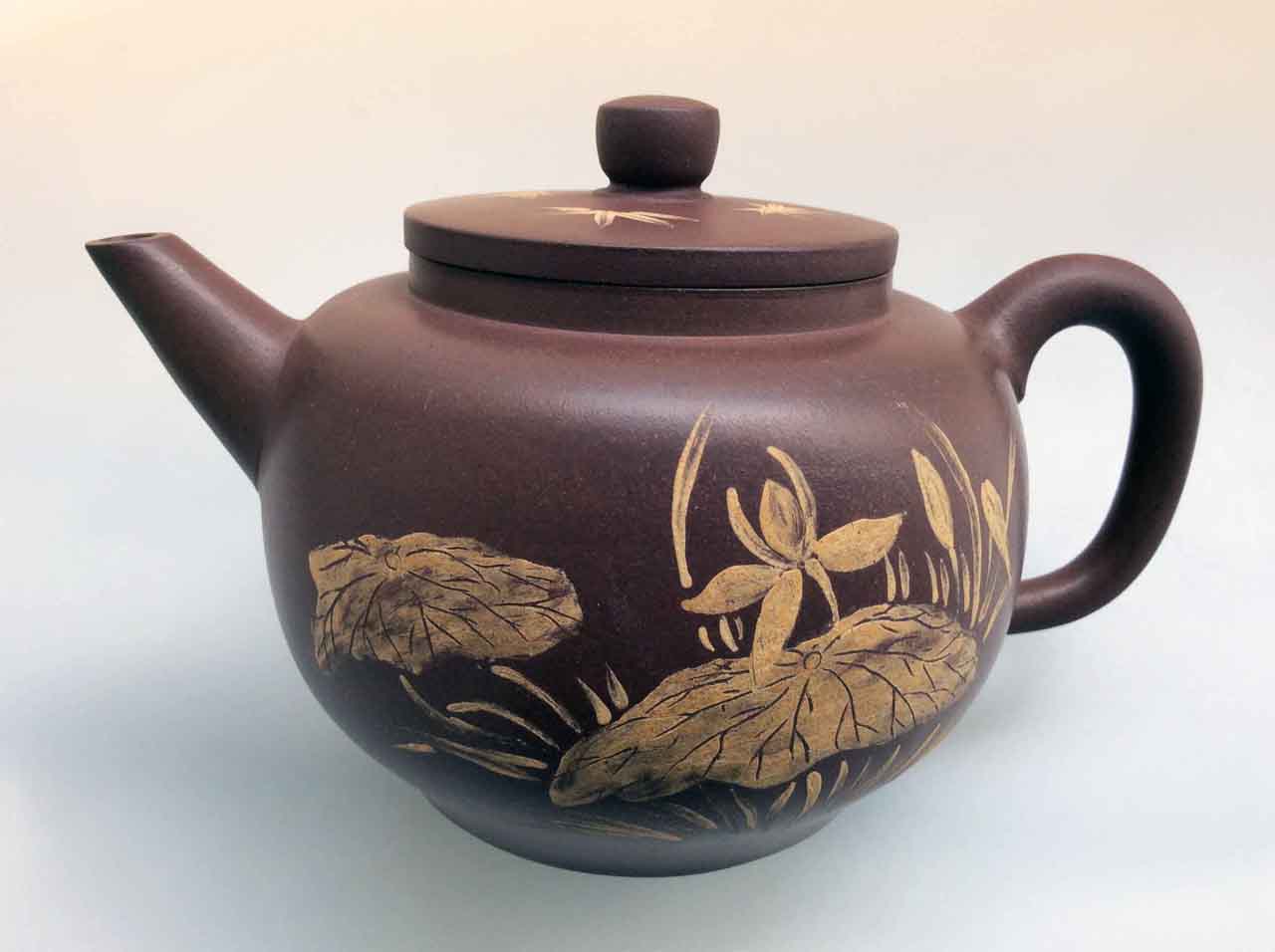 這把壺收到後擺了許多年,之後為了看清泥繪,才將壺上的茶漬清除掉,還它本色。