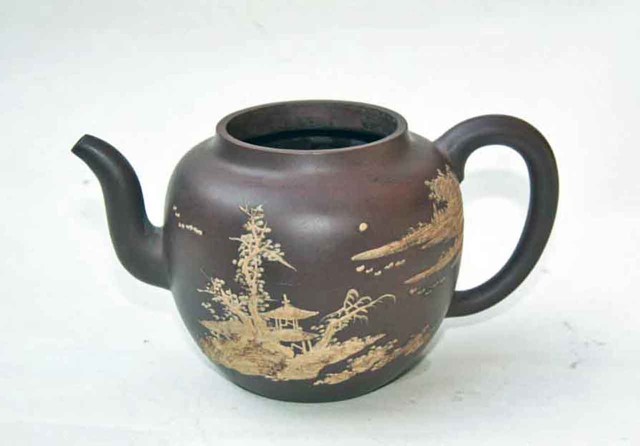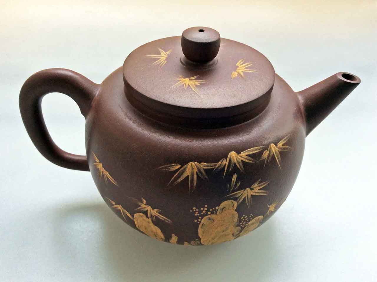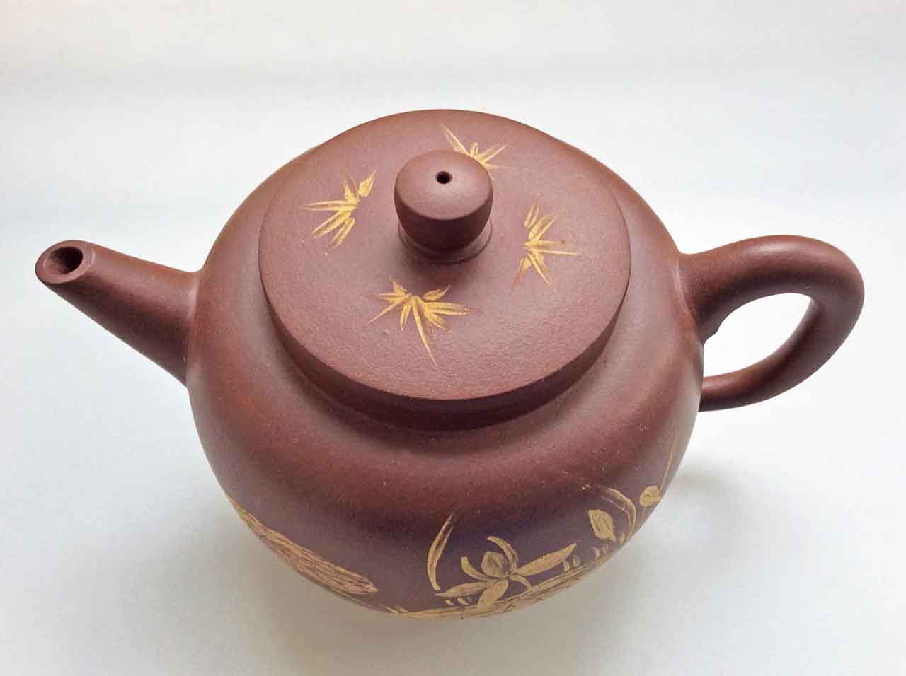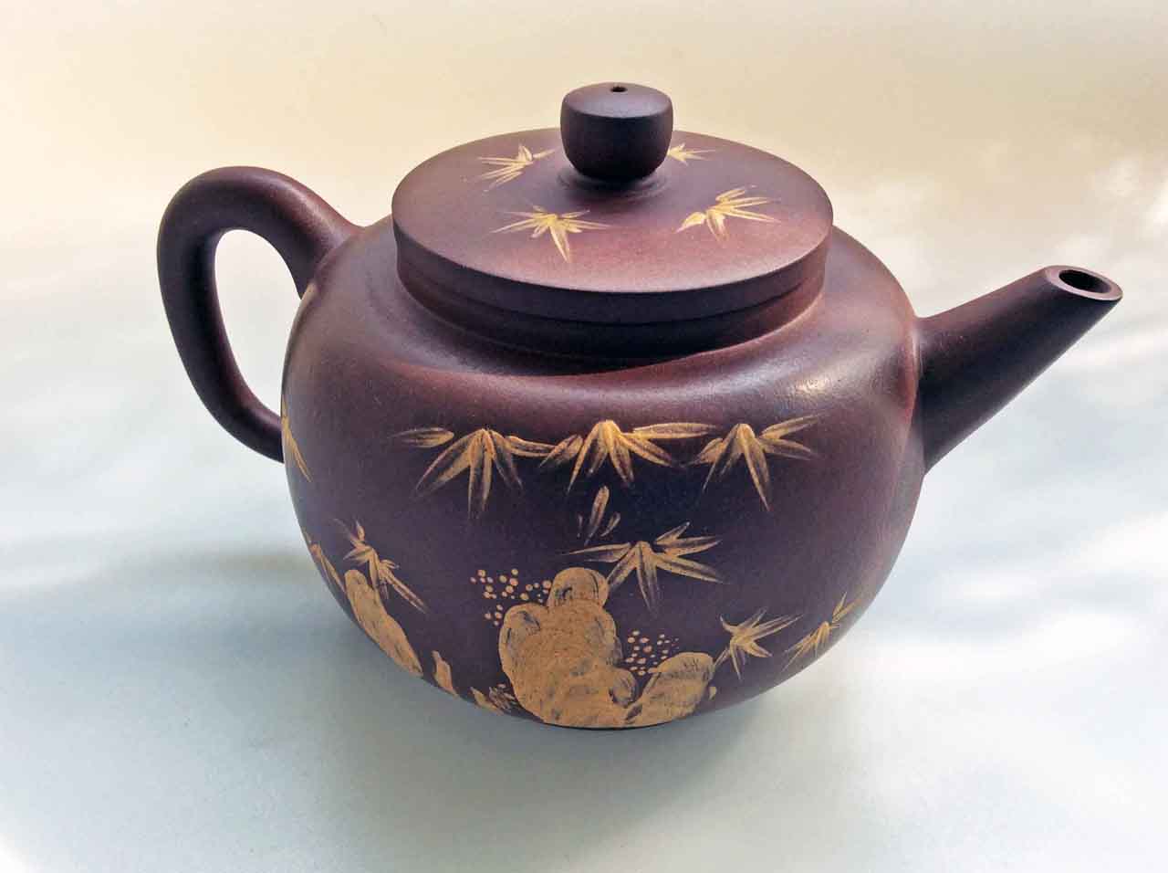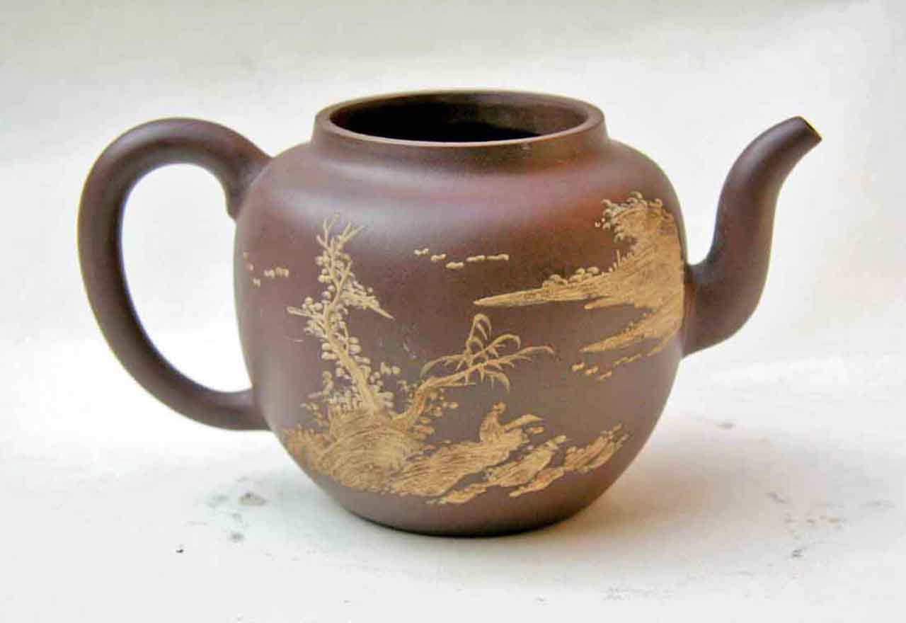 這把壺收到後擺了許多年,之後為了看清泥繪,才將壺上的茶漬清除掉,還它本色。