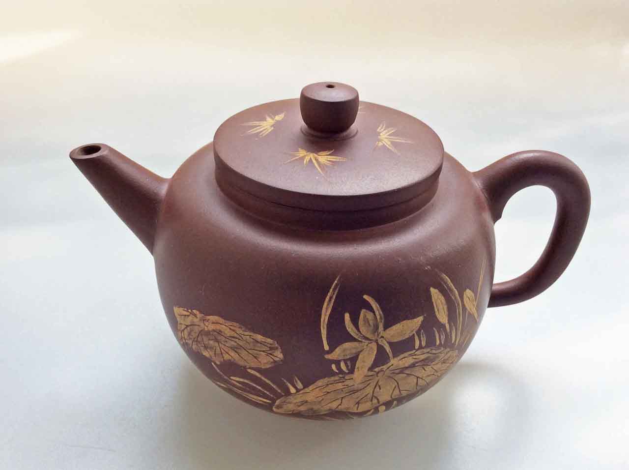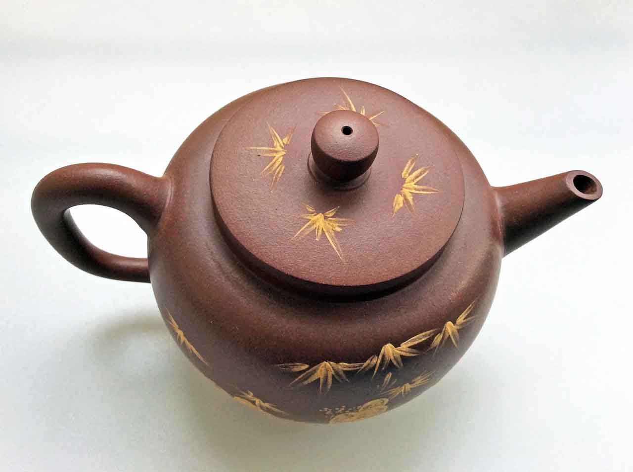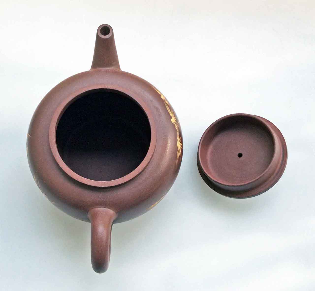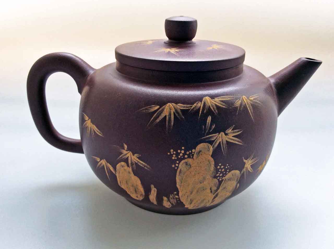 這把壺收到後擺了許多年,之後為了看清泥繪,才將壺上的茶漬清除掉,還它本色。