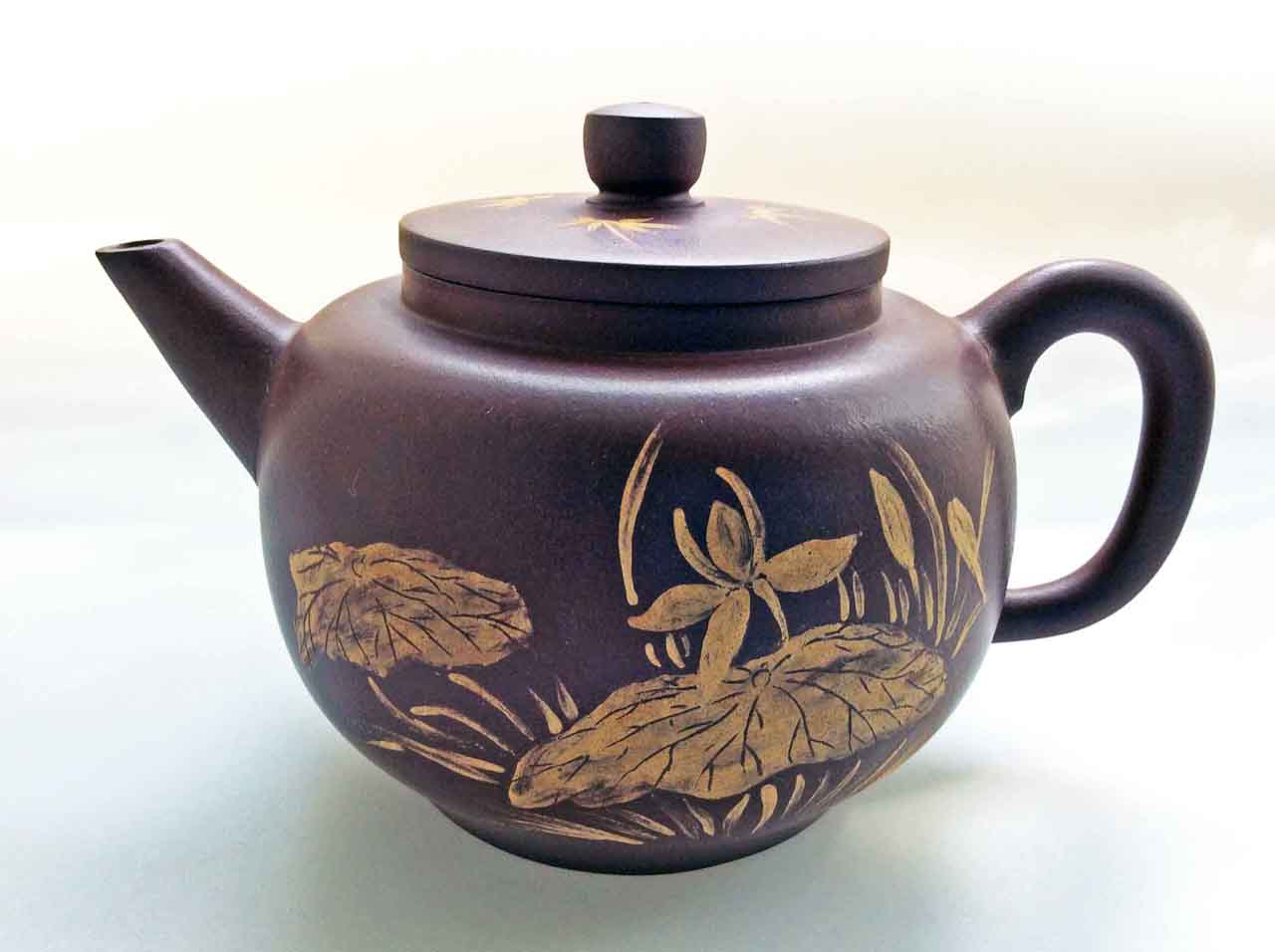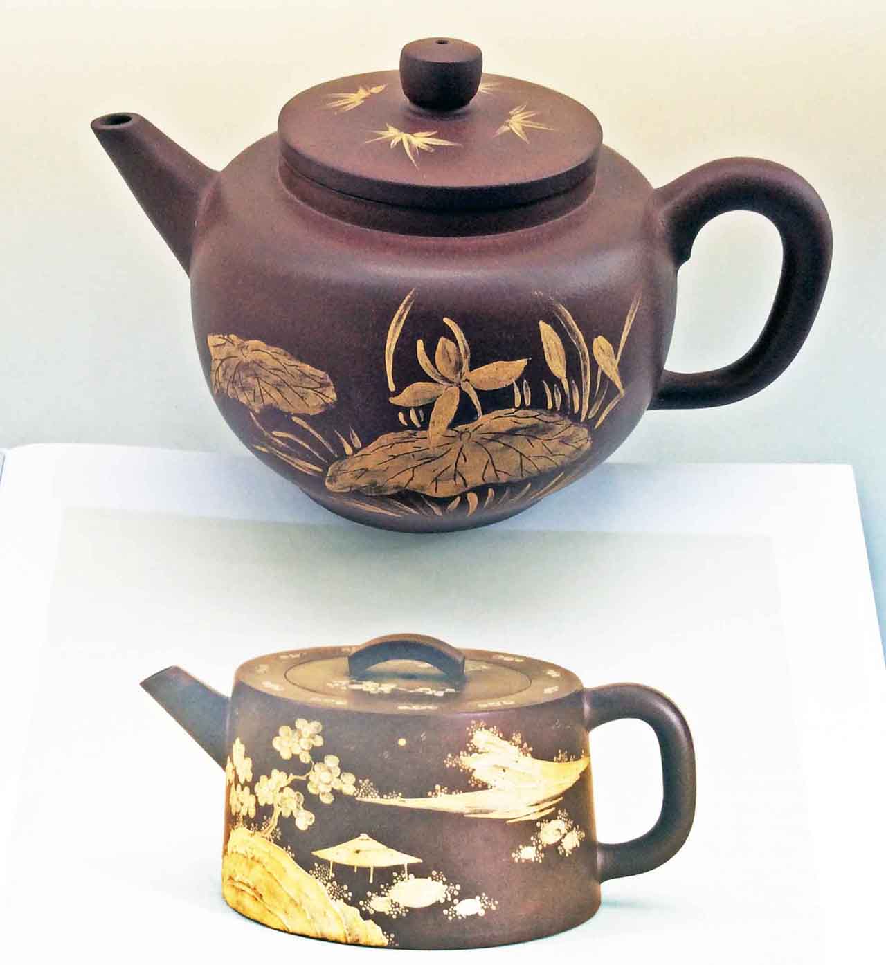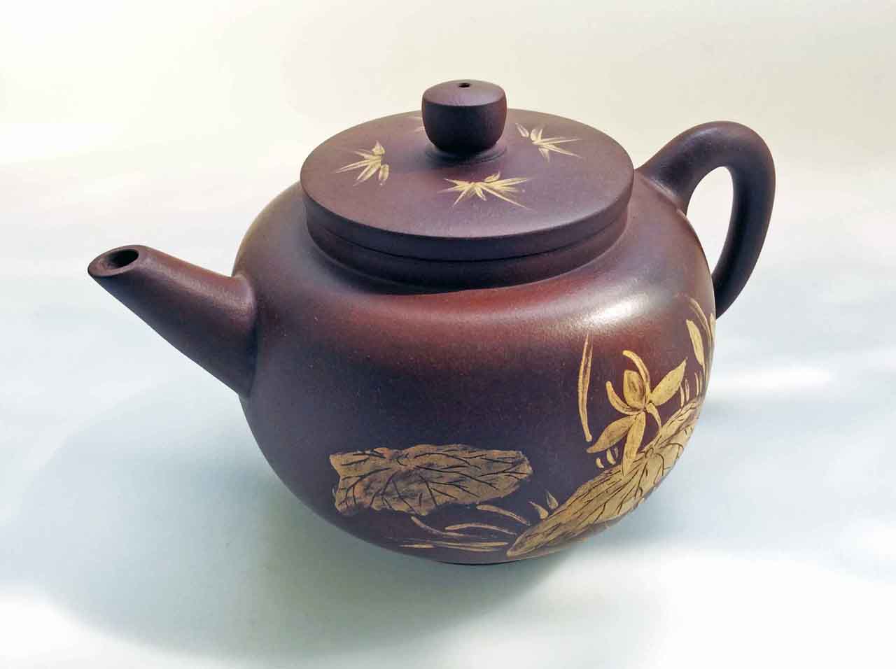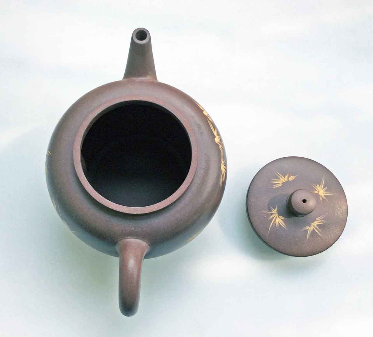 這把壺收到後擺了許多年,之後為了看清泥繪,才將壺上的茶漬清除掉,還它本色。