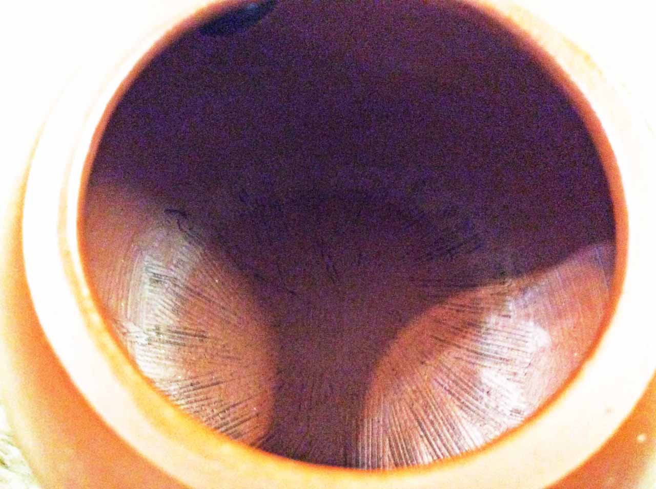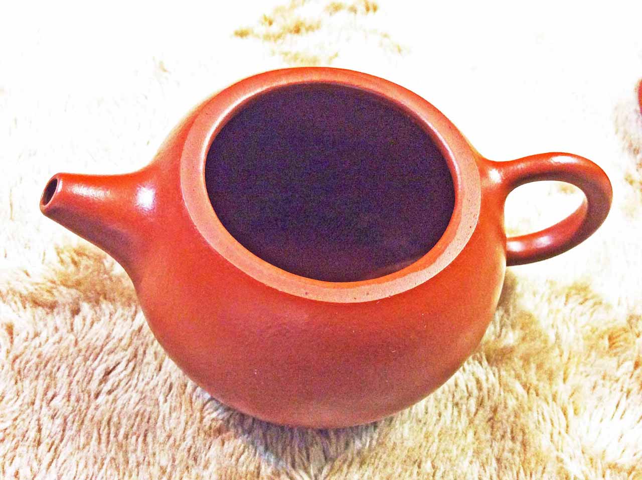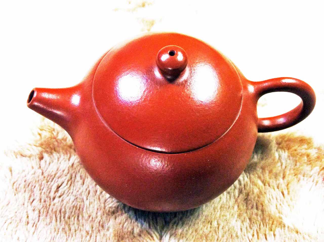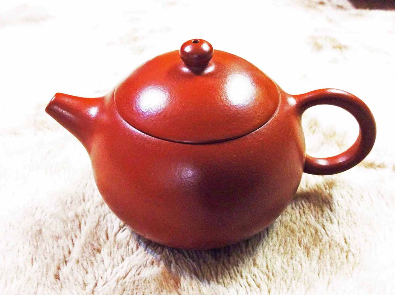 2015年10月24日下午品嚐同學送的黃山毛峰綠茶時,找出ㄧ把早年收的「宜興松亭自造」的倒把西施朱泥壺。