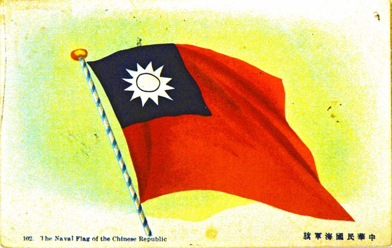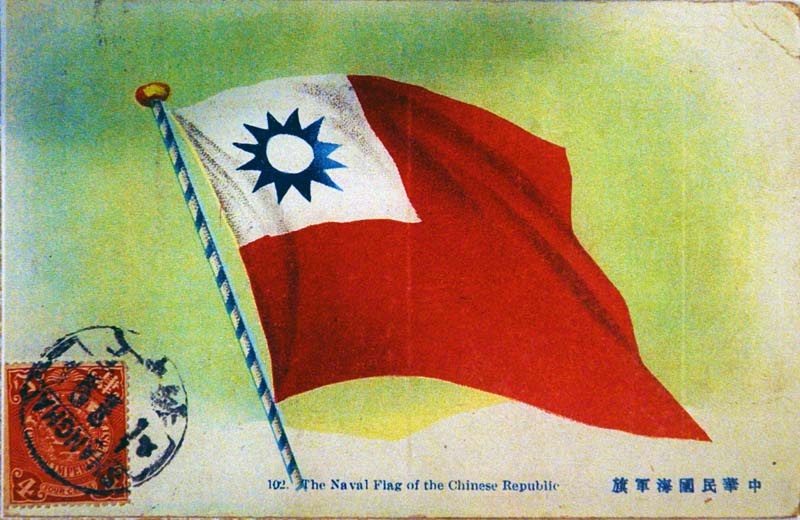 *民國元年北京寄出之明信片上的中華民國海軍軍旗.青天白日或白天青日顯然有些混淆.抓不住。