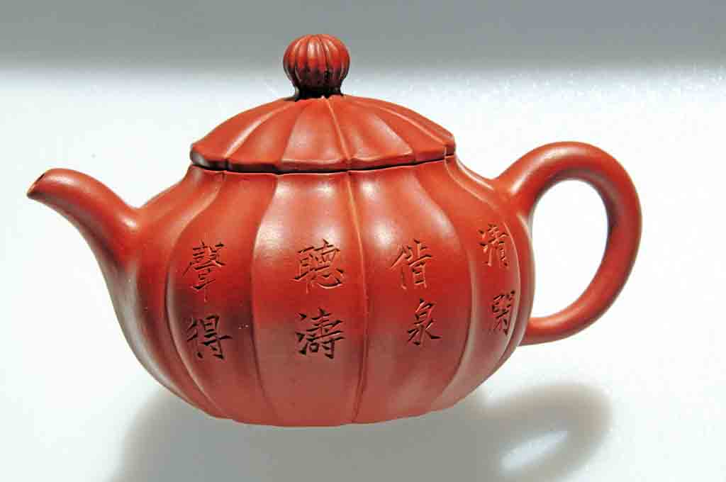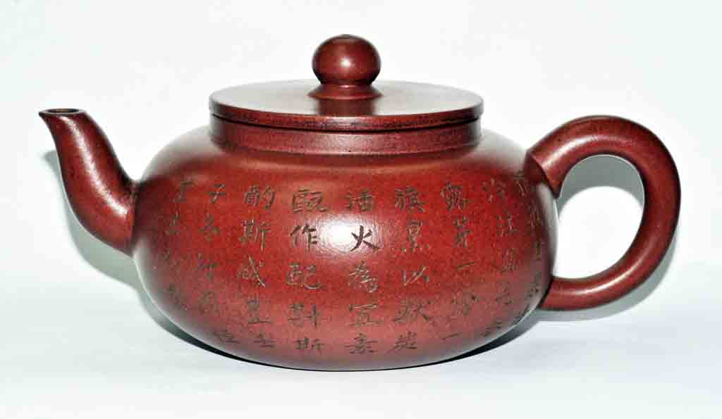 (1)、文人壺:具有傳統的文人審美風格的作品,講究內在文化底蘊,追求文心,提倡素面素心的清雅風貌,在壺體上鐫刻題銘,切壺、切茶、切景,被譽為三絕的“文人壺”。嘉慶、道光時期,文人墨客開始參與制作,題詠詩文,使得宜興茗壺有了更深邃的文化內涵。陳鴻壽(號曼生)及瞿應紹(號子冶)等雅士在茶壺上進行書畫創作,制壺名家楊彭年、萬泉等人竭盡全力,共同創造出“文人壺”式,是鑒賞把玩的藝術精品。