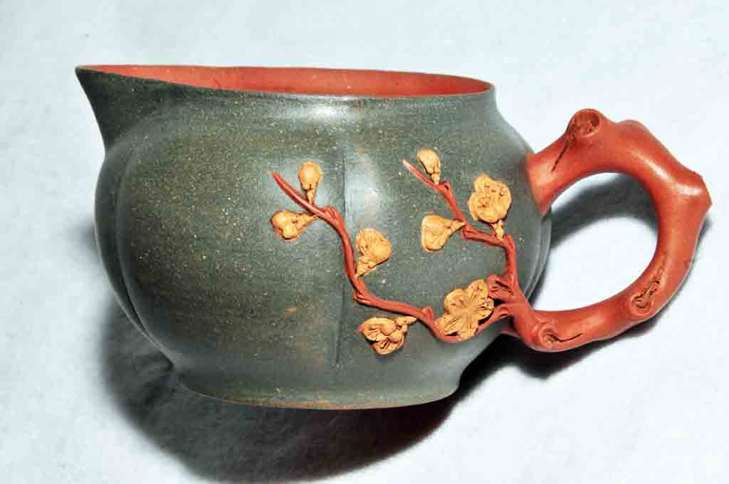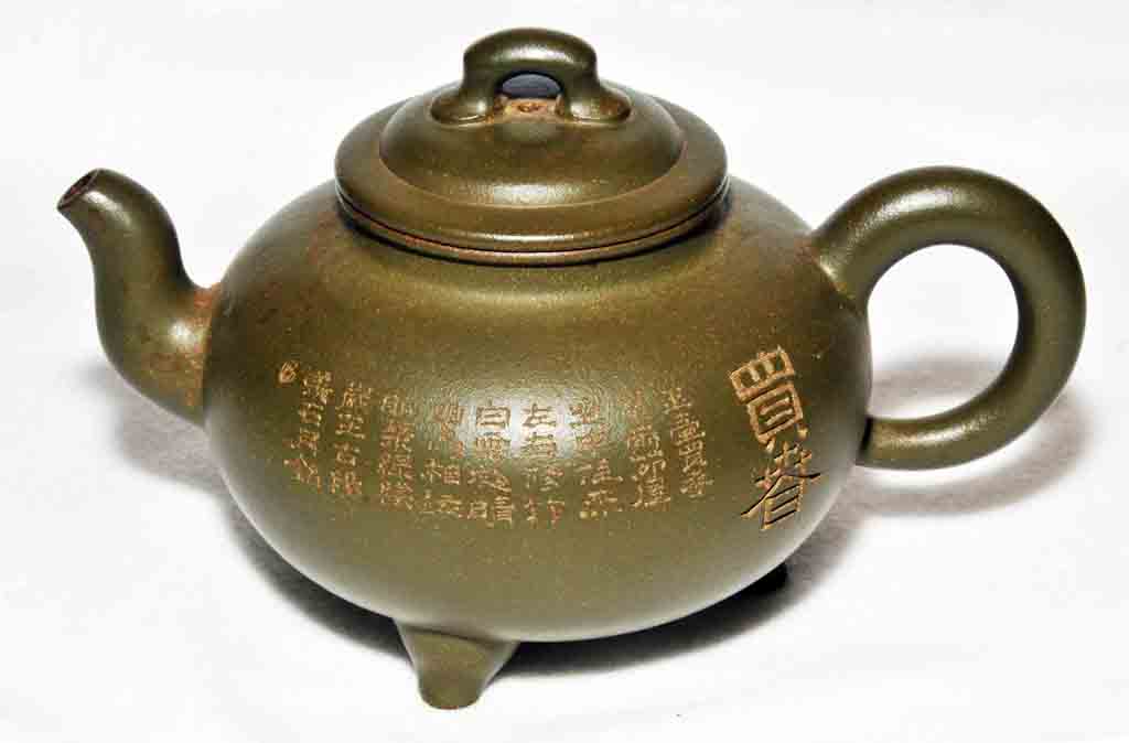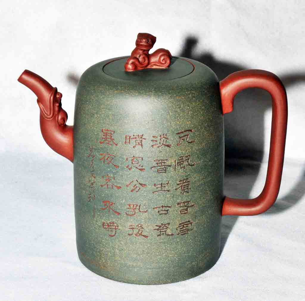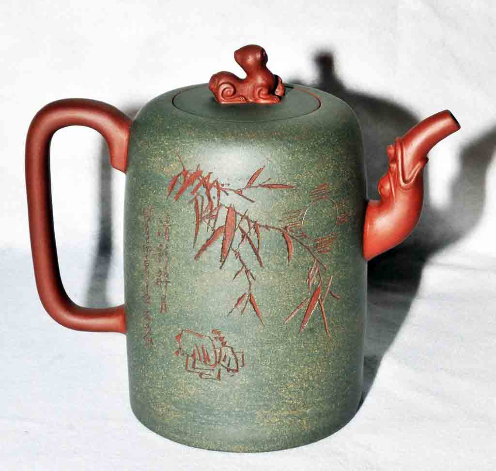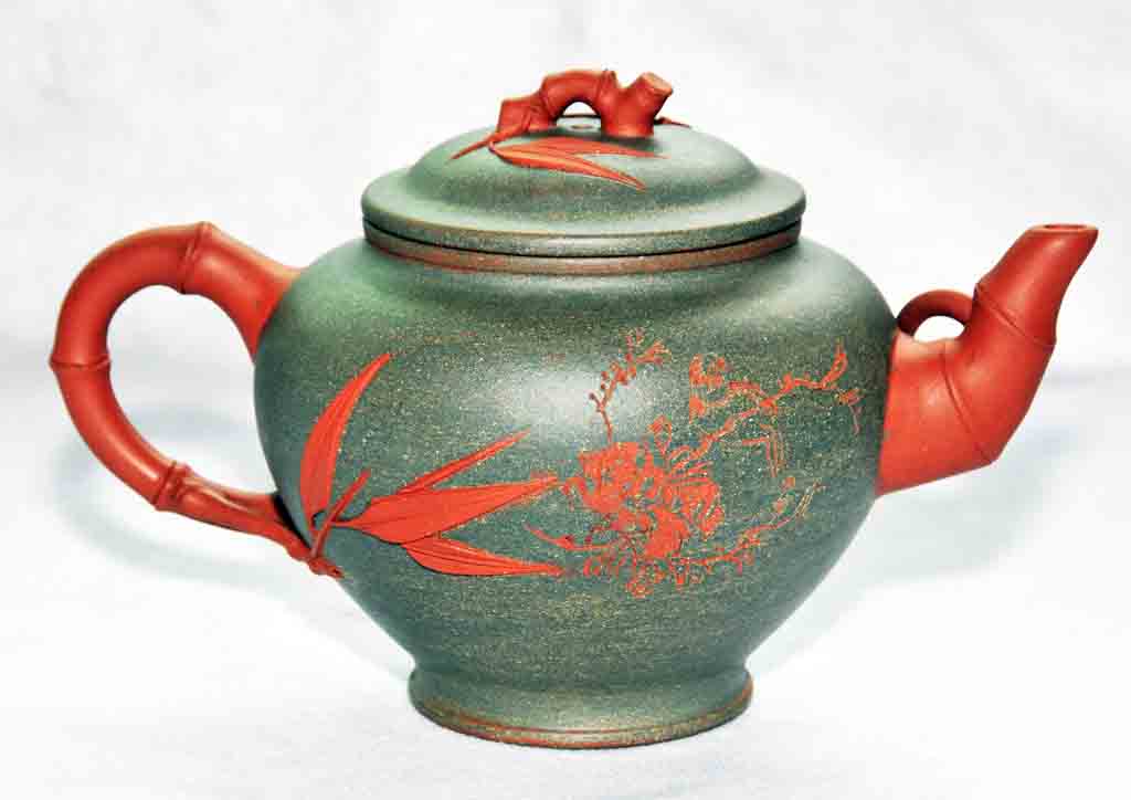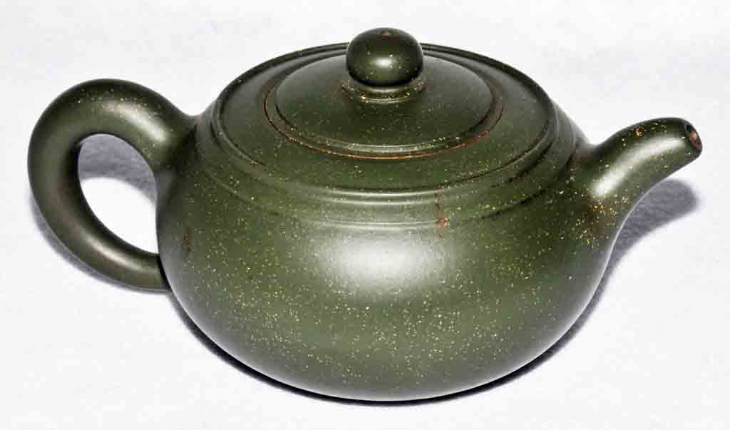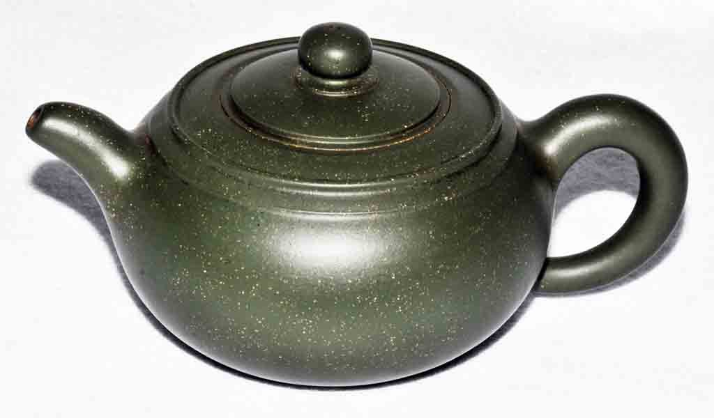 只是早期的「民國綠」泥壺的壺面存有如豆沙一樣的顆粒感,圓潤光滑不拉手;這些「民國綠」泥壺剛出窯時,不是很綠,有點灰濛濛,但是經過茶水的養泡之後,越養越綠,越養越潤。但是,近16年製造的綠泥壺,參雜了太多色料,壺面過於光滑且沒有顆粒感,在本質上已經與「民國綠」有著根本上的差異。