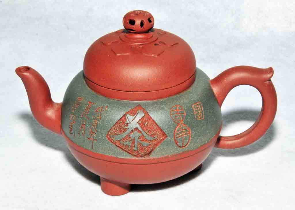 金鼎商標(1925-1939),案卿(蓋,江案卿,1886-1953),綠泥合桃壺。1928