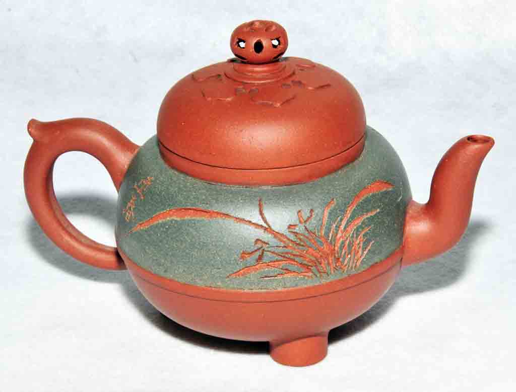 吳澹(原名吳順根,藝名吳澹,後改名吳純耿,1916-1999),岩如畫,戊寅(1938)年夏月,雙色博爐壺。