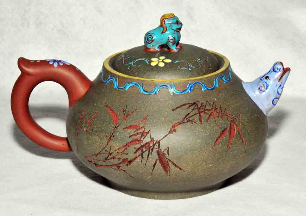 到了1980年代初期,宜興製壺大量採用「拼紫」的作法,所謂「拼紫」,就是添加氧化劑等化學元素,製成後呈現各種豐富的色澤效果,因此開始有所謂墨綠泥與其他深、淺色的綠泥問世。