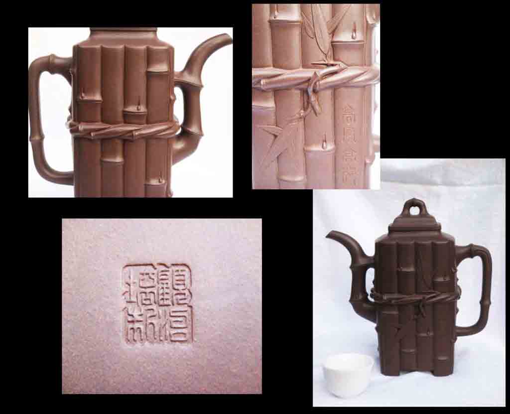 近日,在網上看到兩把高風亮節壺的圖片,特摘下與1987年出版的壺譜圖錄上的高風亮節壺作比較。近年,顧紹培先生雖然重新複製高風亮節壺,但是,也許是手感與當年的紫砂不復存在,作品總是較當年的高風亮節壺差上一些勁挺的韻味,提出供大家參酌。