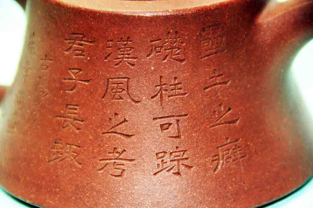 “曼生壺”一般都在壺底鈐有“阿曼陀室”銘款,把下署“彭年”印章,這不能視作只是陳鴻壽與楊彭年兩人合作的作品,事實上,為“曼生壺”作銘的,除曼生本人之外,多是他幕中友人如江聽香、郭頻迦、高爽泉、查梅史等人。製作者也不僅僅是楊家三兄妹。“曼生壺”的創作班子,實則以陳曼生為領銜,由文人、藏家和陶工共同參加的紫砂壺藝術興趣小組。這種由文人參與的紫砂製作方式,雖然早在明末就已出現,但是將紫砂茗壺與詩書畫印等藝術相結合的風氣,的確是經由陳曼生的鼎力開拓推廣的,這種流風餘韻一直影響到今天。