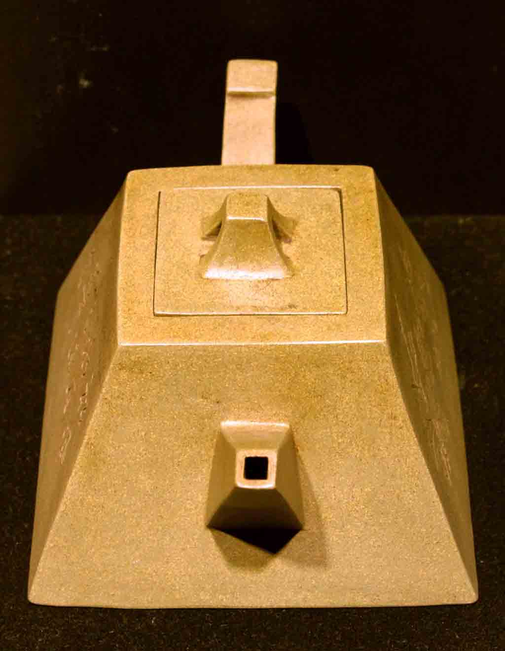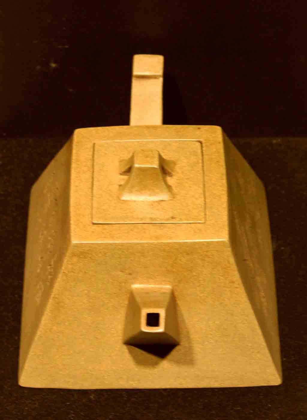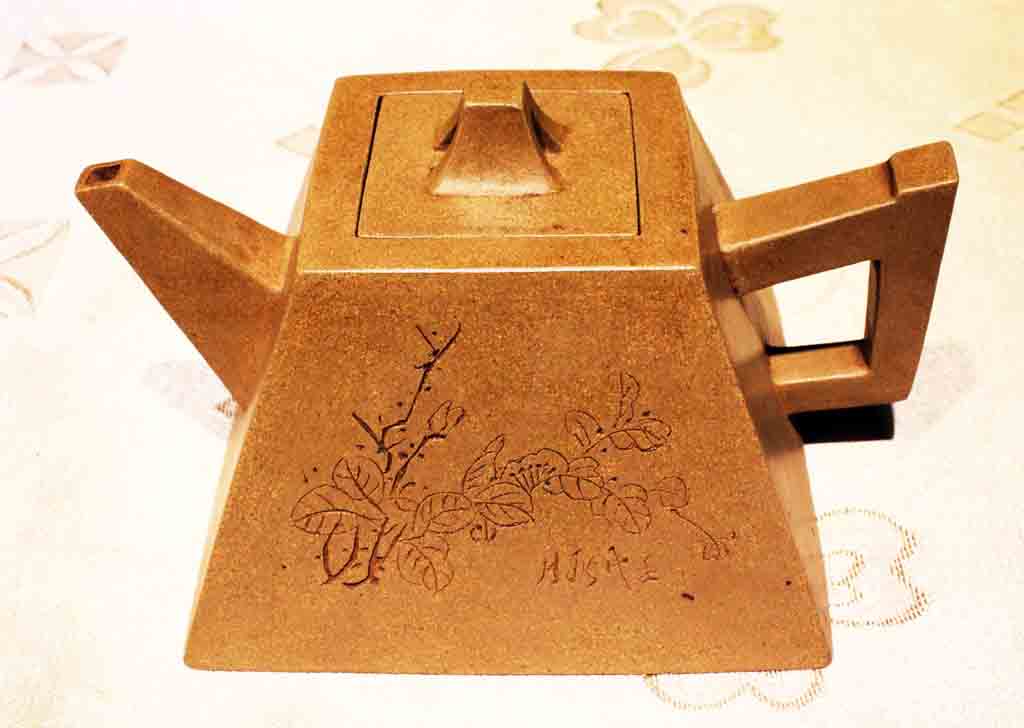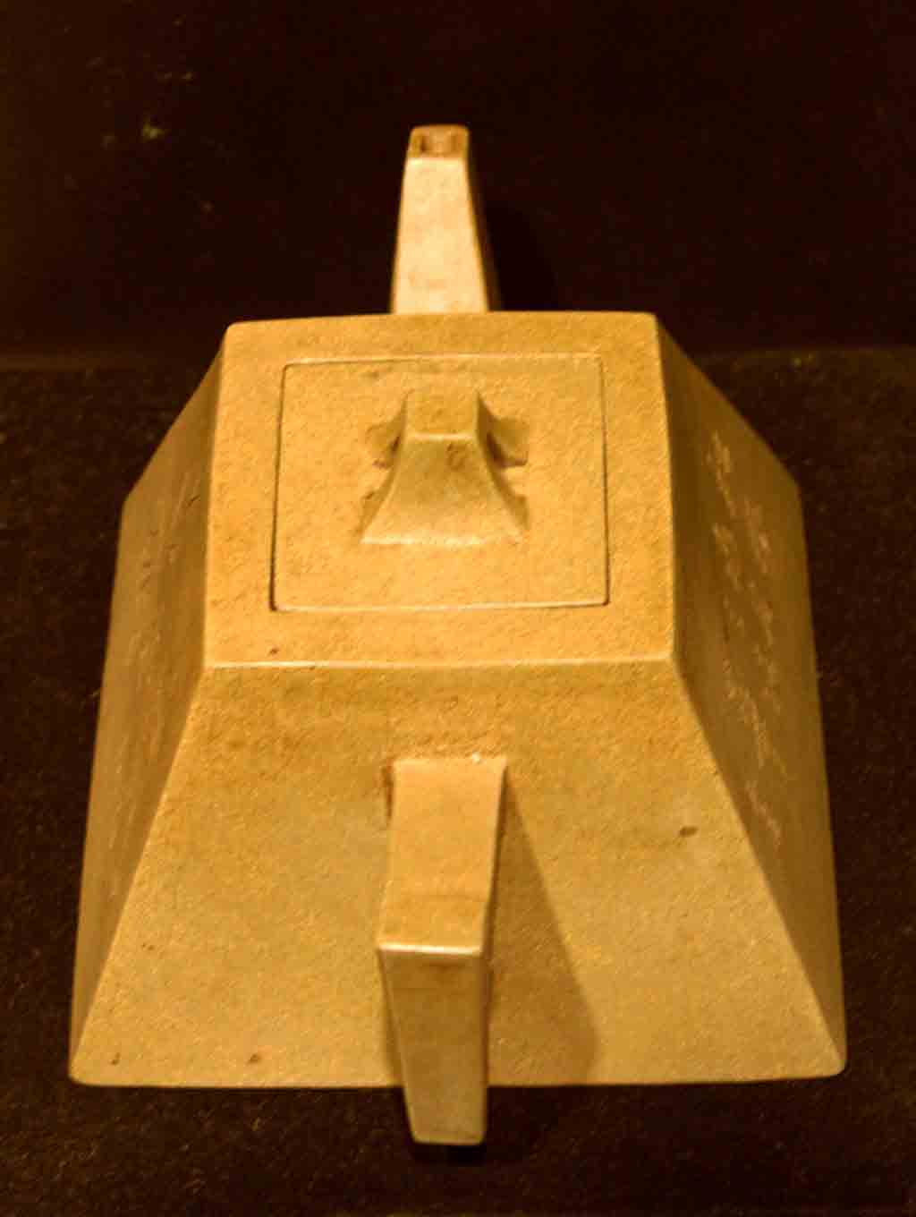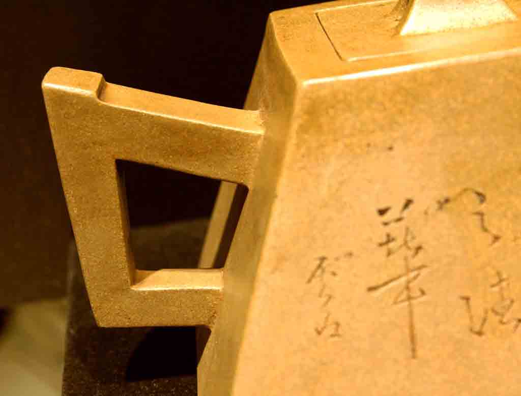2013年3月7日,在"清樂玉器"看陳懷祖老闆剛從日本購回的陳光明段泥梯形方壺,底款”宜興紫砂名壺”,蓋款“光明”,壺上銘文落款”雲石”,綜合三個銘款的交集,推定本壺為1925年前後由晚清至民國製壺名家陳光明精心製作的好壺。市價約人民幣10~20萬元,近日有拍賣價高達50萬元人民幣者。
