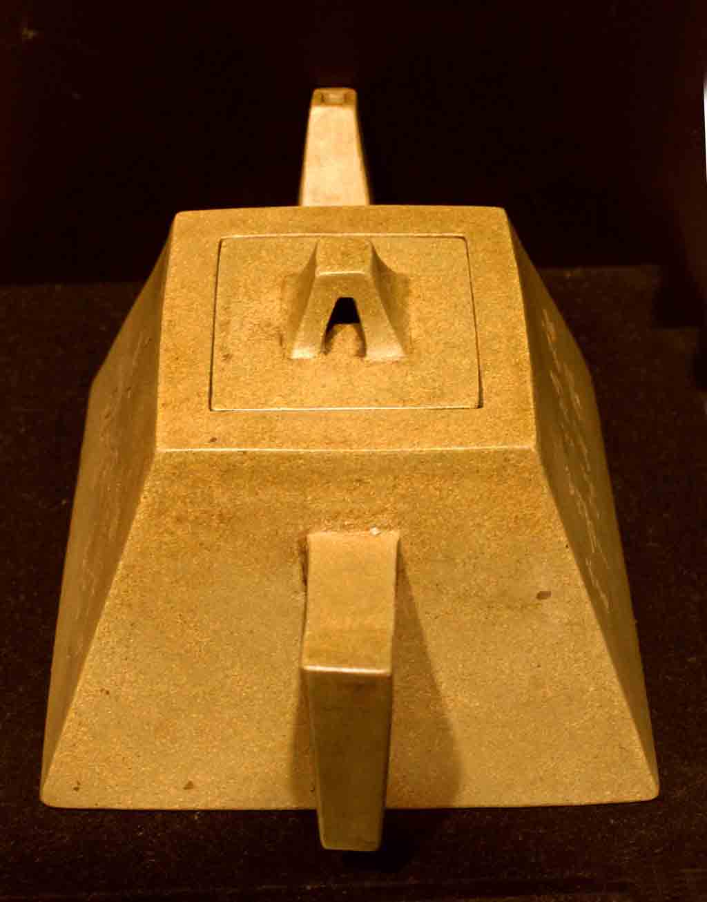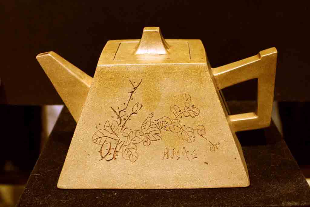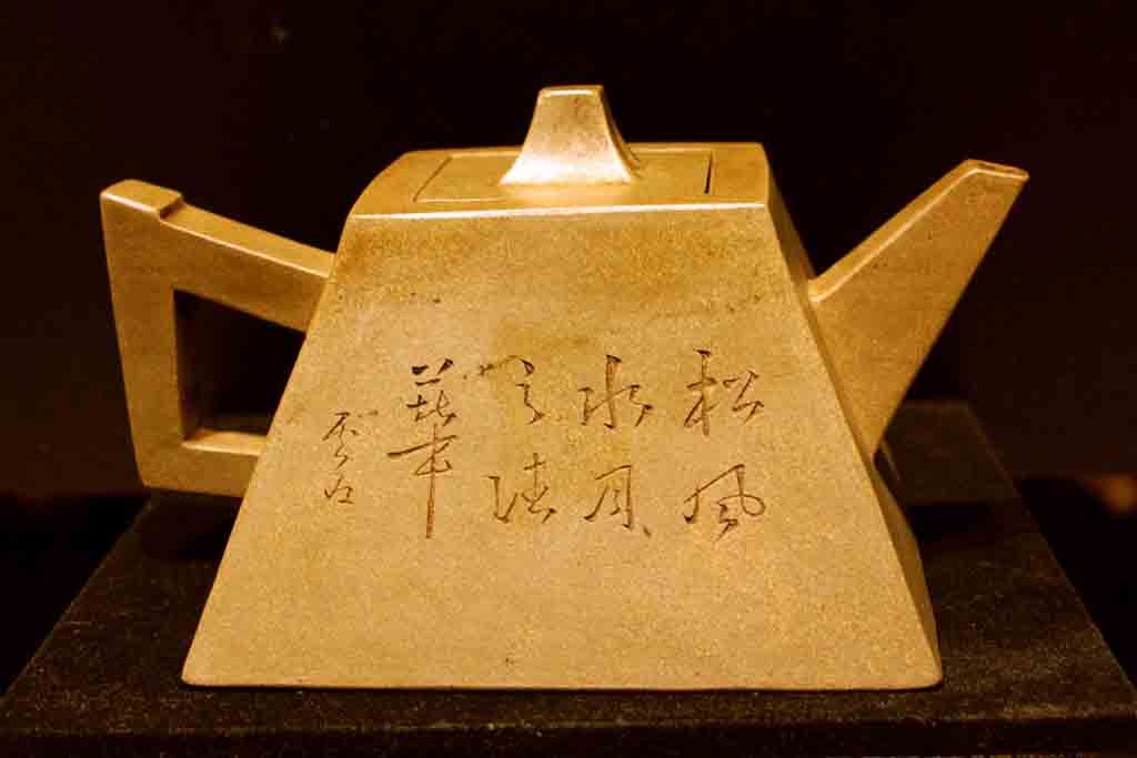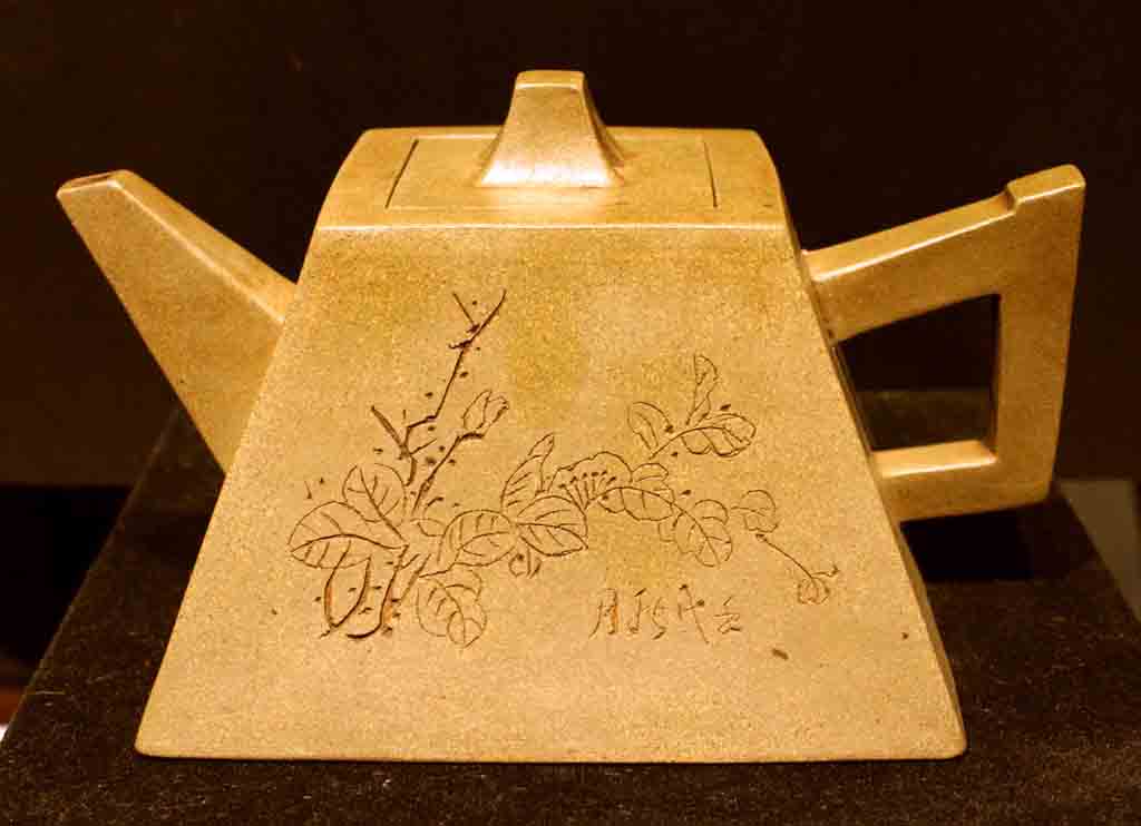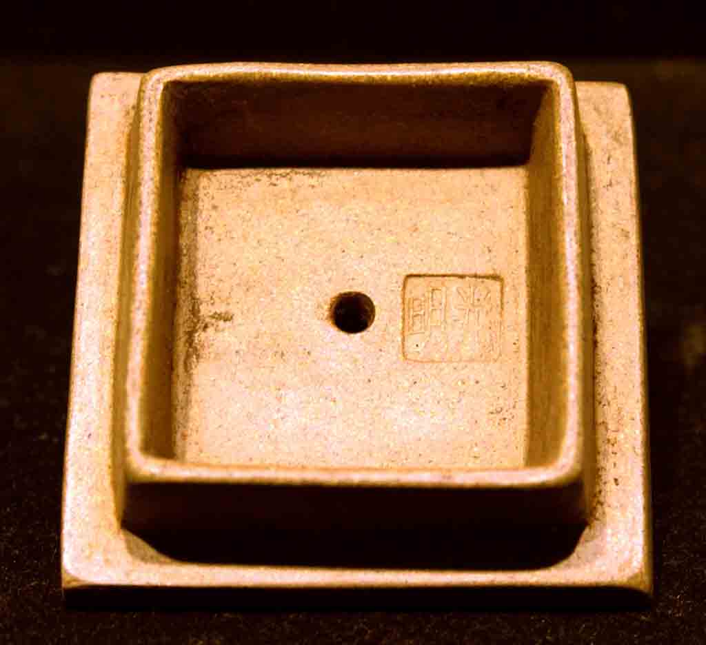 2013年3月7日,在"清樂玉器"看陳懷祖老闆剛從日本購回的陳光明段泥梯形方壺,底款”宜興紫砂名壺”,蓋款“光明”,壺上銘文落款”雲石”,綜合三個銘款的交集,推定本壺為1925年前後由晚清至民國製壺名家陳光明精心製作的好壺。市價約人民幣10~20萬元,近日有拍賣價高達50萬元人民幣者。
