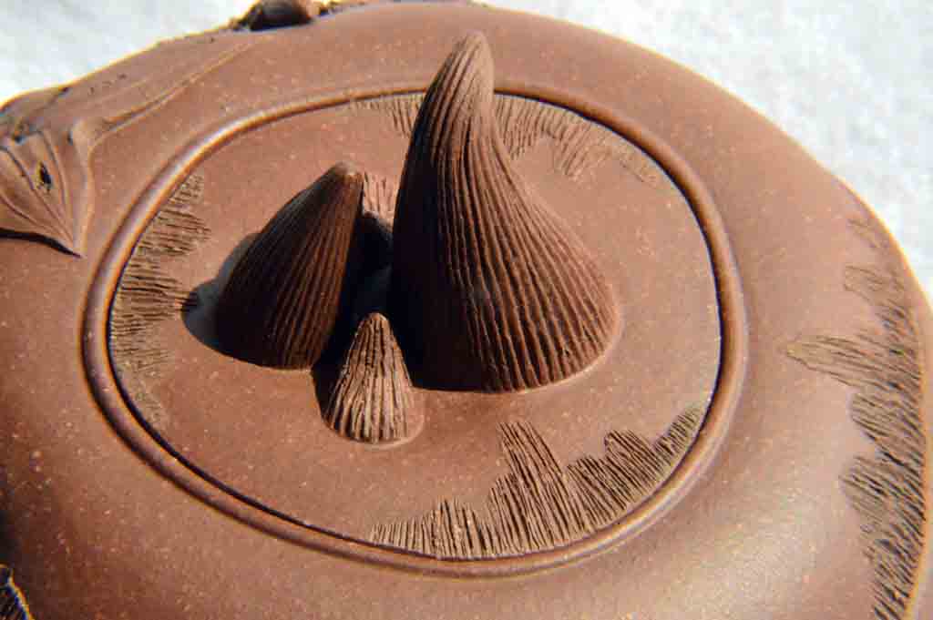 蔣彥亭仿古製品最大的優點就是他的新製不經作舊就有古壺的老味,這是一種粗獷古樸的韻味。新壺老味,加之沒有署真名的作品可供對比參考,這使蔣彥亭的作品真假難辨。