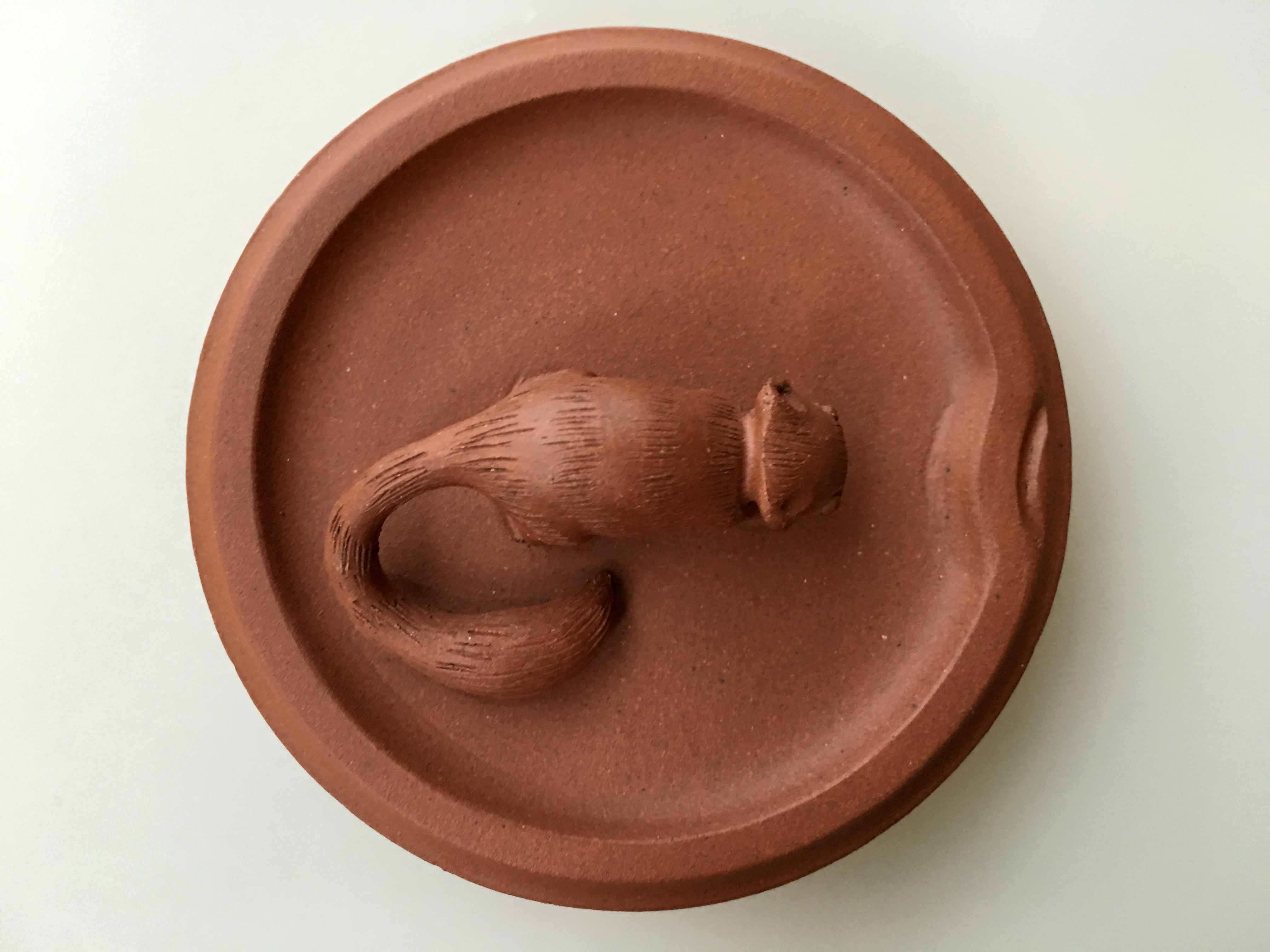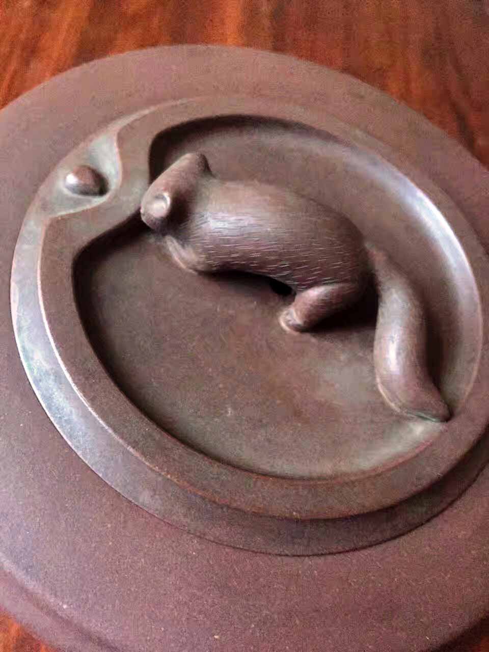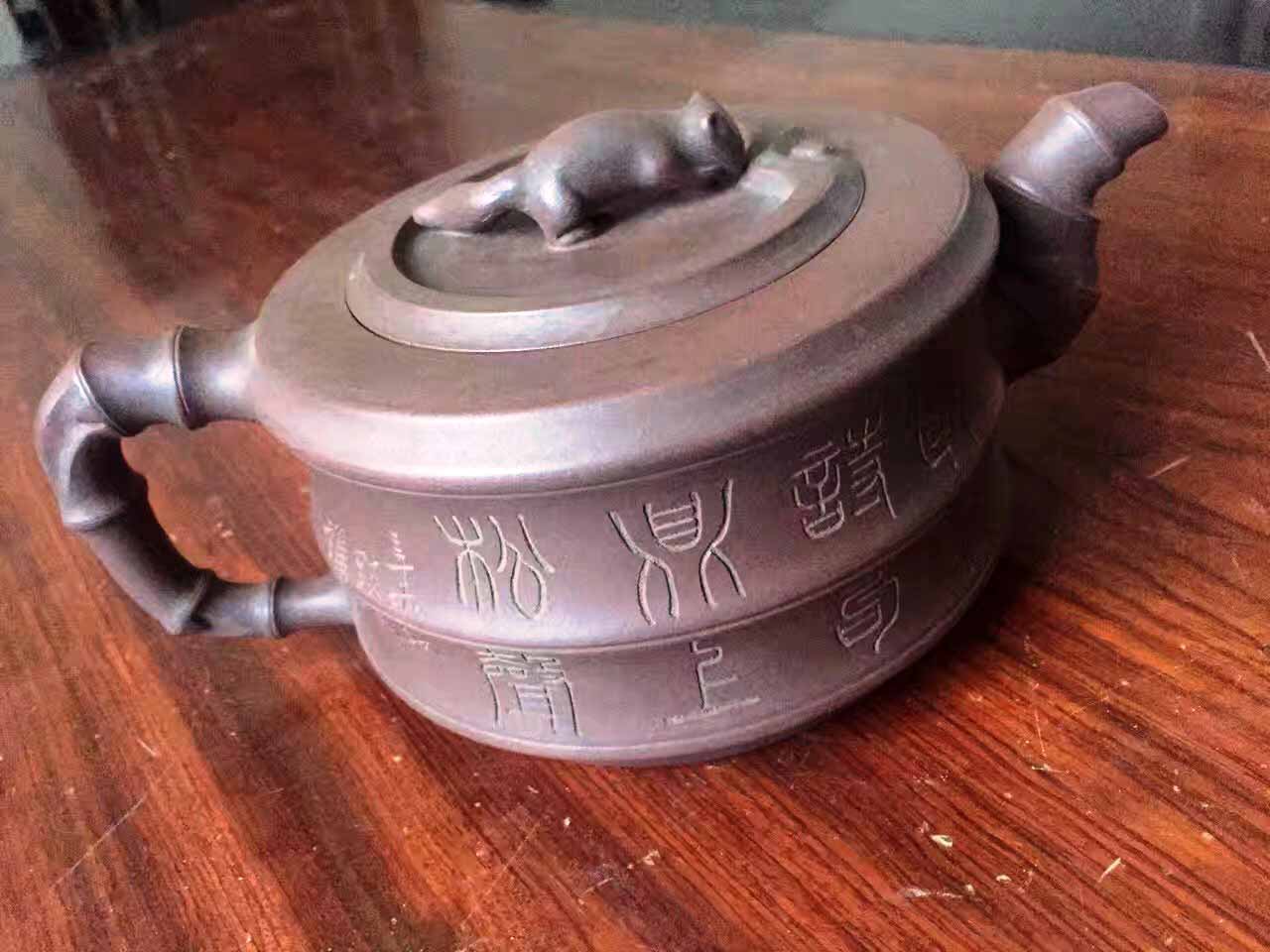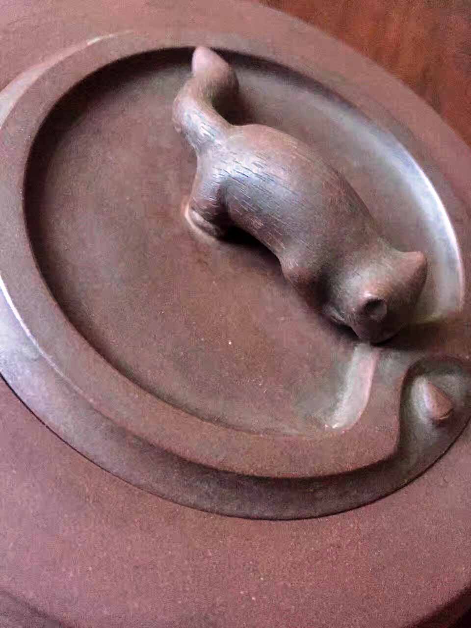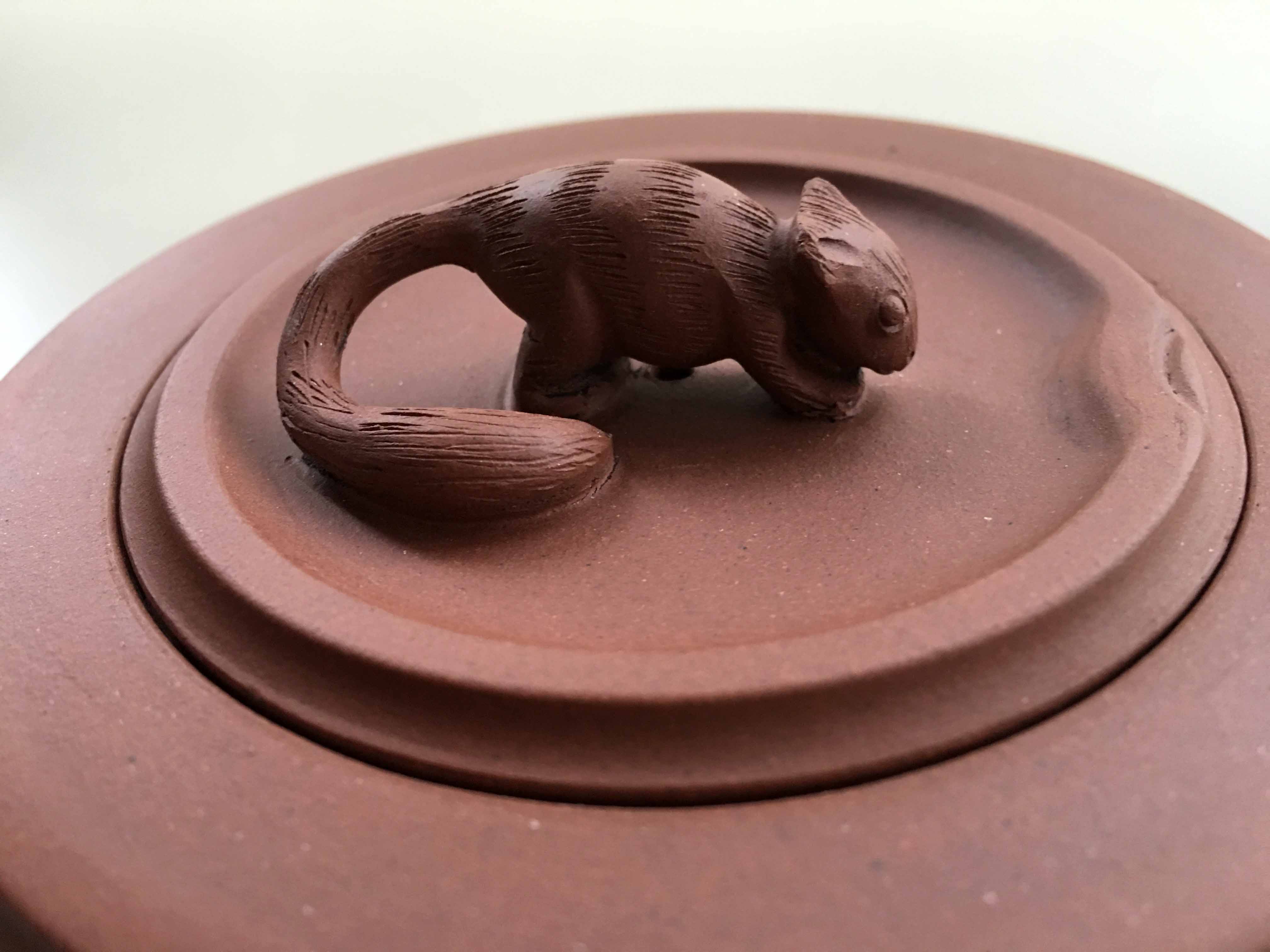 2016年9月15日,一位也是群友的宜興工藝師張惠女士,在微信上傳了一把朱愷大(可心)的「松鼠竹節壺」。當時即想我也有一把,待有空找來比較一下。
