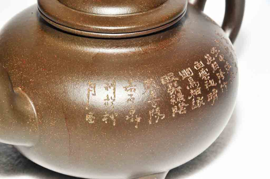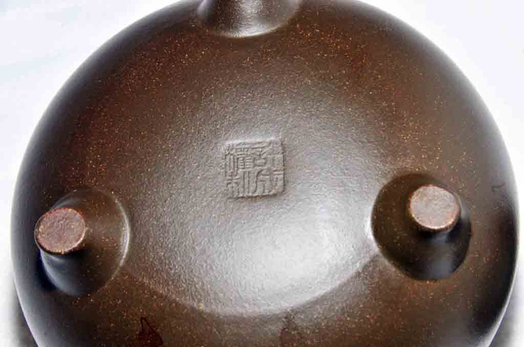 隨著改革開放的逐步深入,進一步解放思想,實事求是,譚泉海先生直接用其真名“泉海”落款署名,以張揚個性,獨創品牌。近年譚泉海先生陶刻、魯文英(?)創做的笑櫻壺,有譚泉海先生親字用毛筆書寫的證書。其陶刻風格與前期風格一貫,一脈相承。