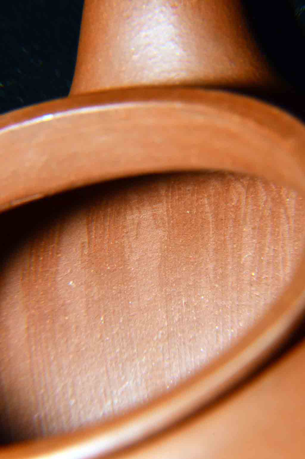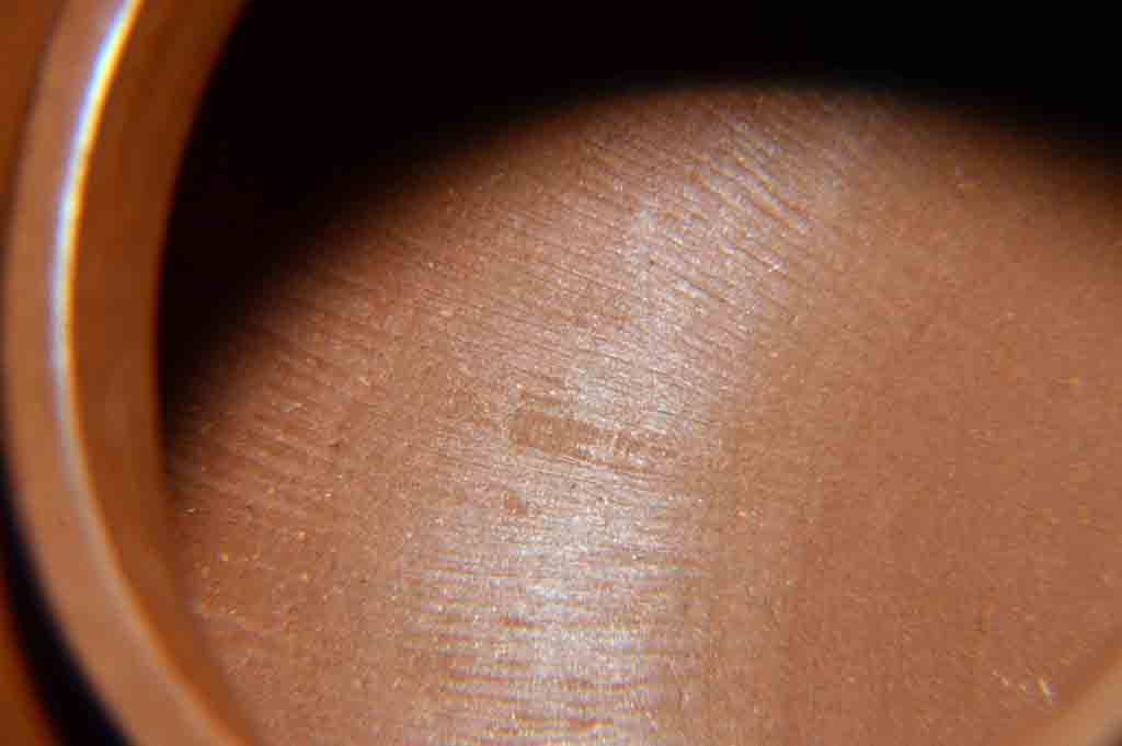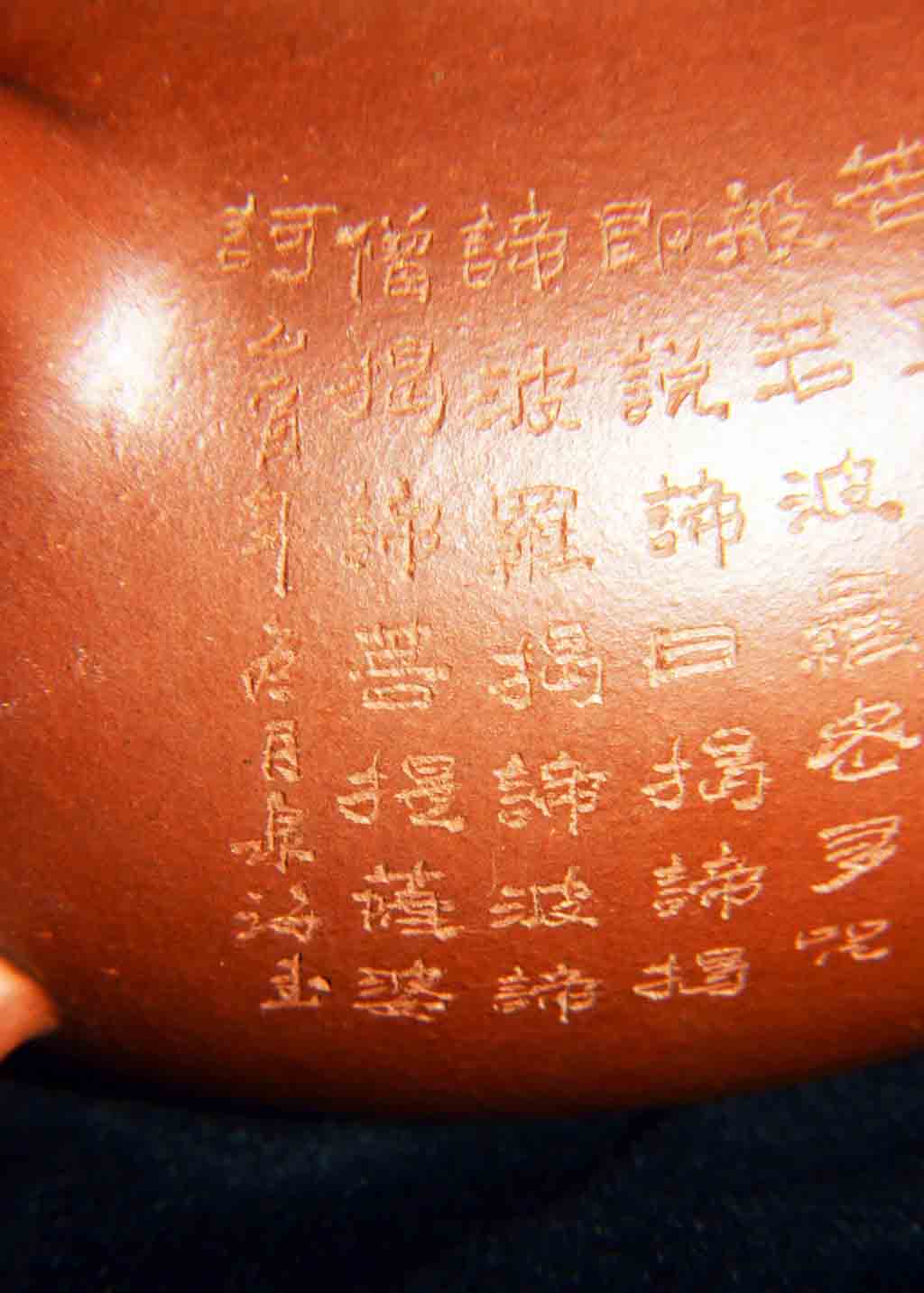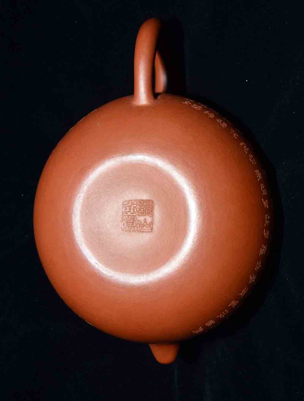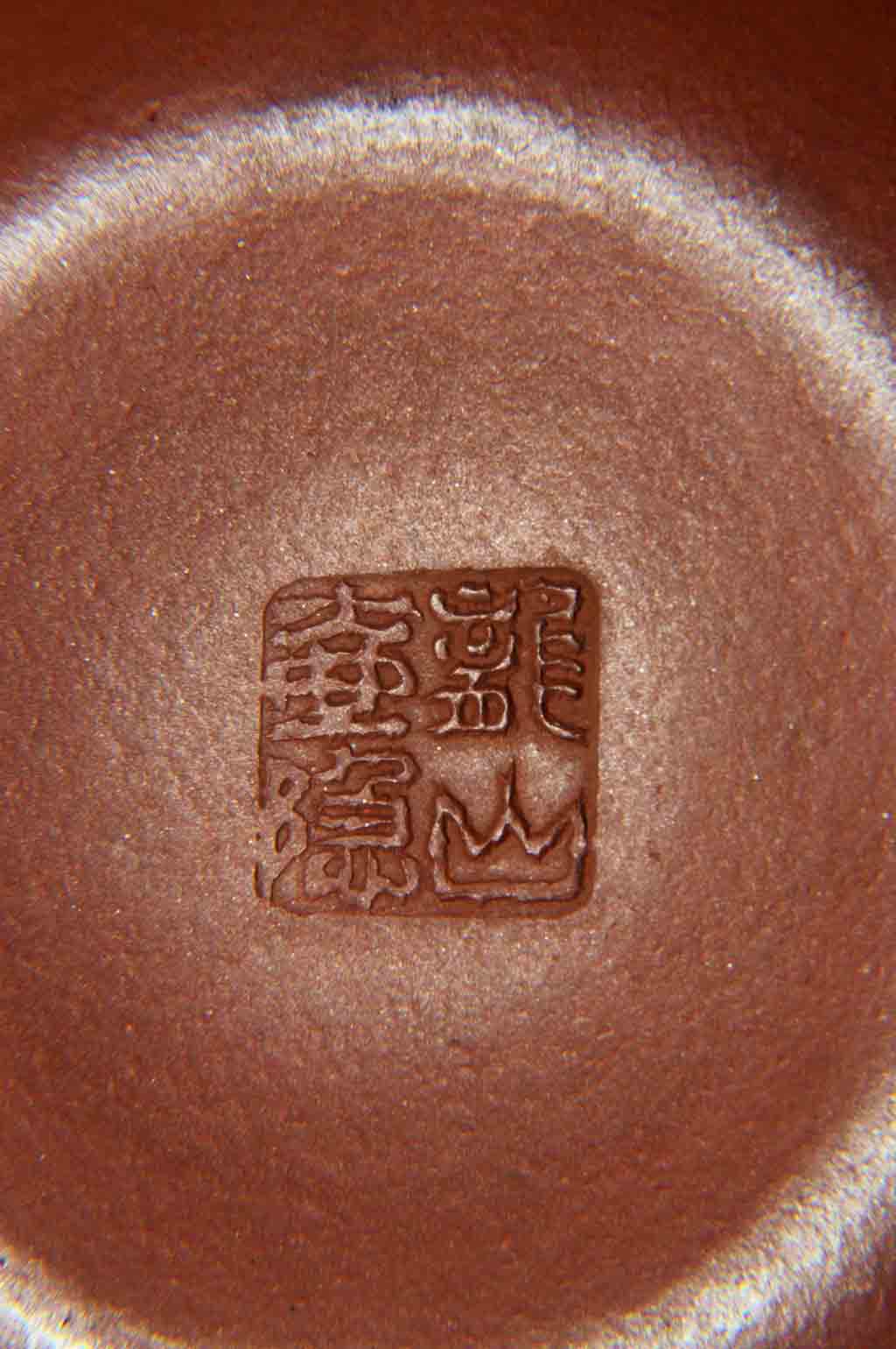 文革開始後,紅色浪潮,激蕩澎湃,像其他眾師兄弟姐妹一樣,他也改名“紅波”。因為“紅泉”與“洪拳”同音,不雅;且“泉”乃泉水叮咚、涓涓細流,甚至波平如鏡,毫無氣勢,與當時的豪情壯志、波濤洶湧的革命形勢不合拍。“紅海”,因海有潮起潮落,不符合一往無前、浩浩蕩蕩的革命形勢,且西亞與北非之間有一內海,叫“紅海”,與中國地隔懸遠,毫不搭界。也可能起初偶爾用過“紅泉”“紅海”二款,但很快就改定用“紅波”,取“紅色的波濤”之意,完全符合當時波浪壯闊的革命形勢。“紅波”款紫砂陶刻作品存世相對較多,但多為陶刻精品(好砂、好工、好刻)。