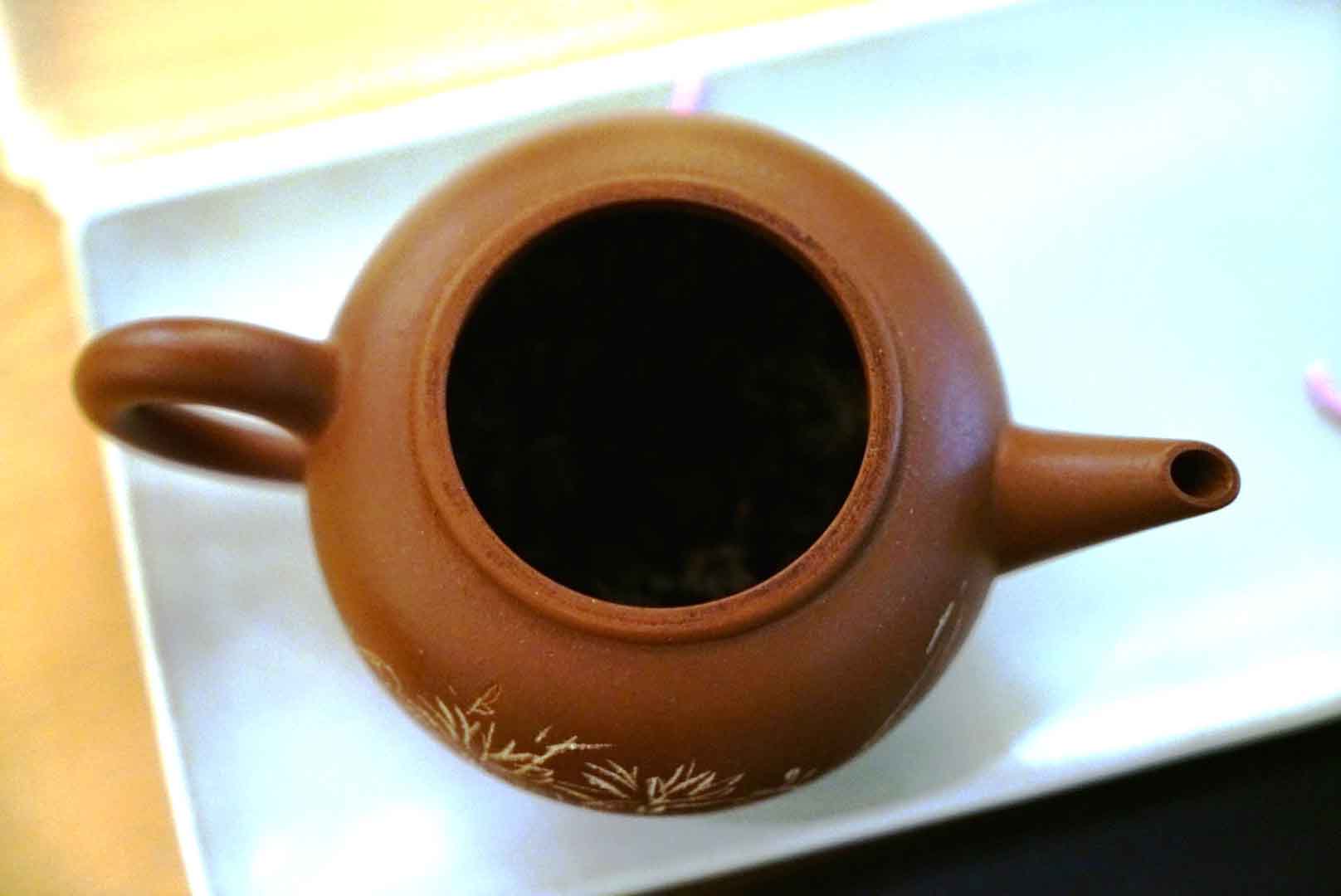 八、壺內置茶:一般成茶山狀,沖水不易均勻,可輕壓改採凹狀茶山,可讓茶葉舒展更均勻。