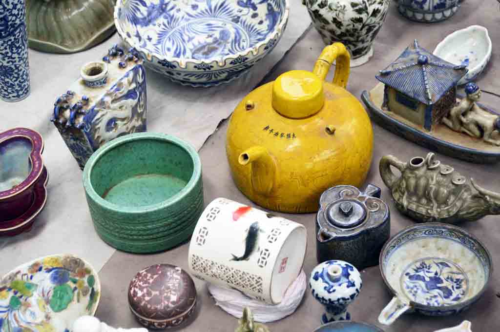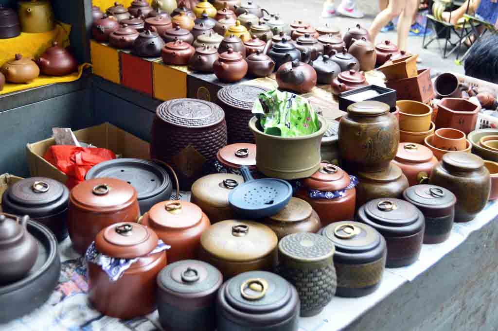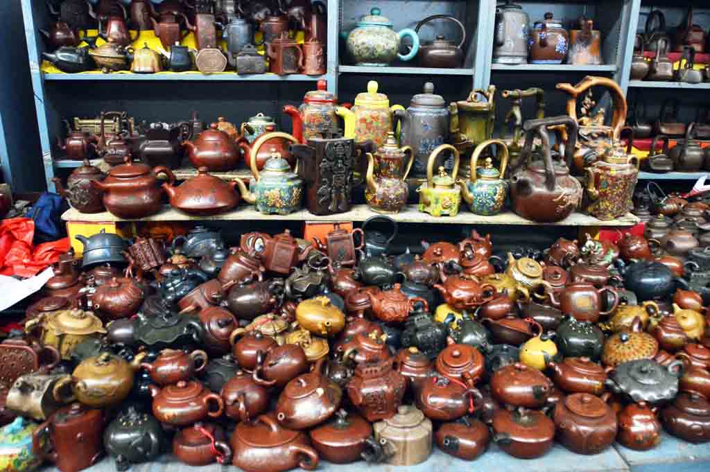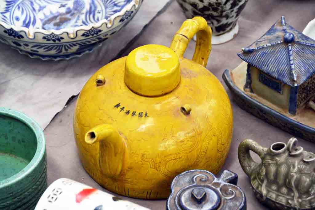 北京潘家園舊貨市場裡的紫砂壺與其他