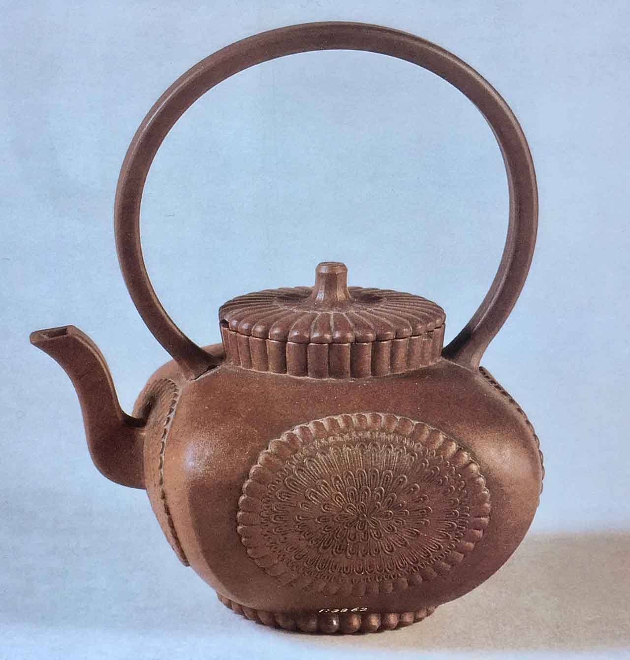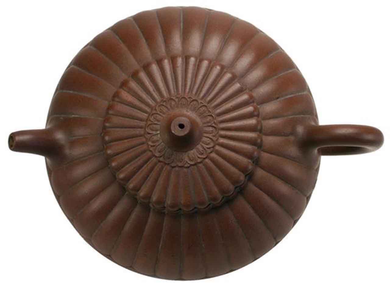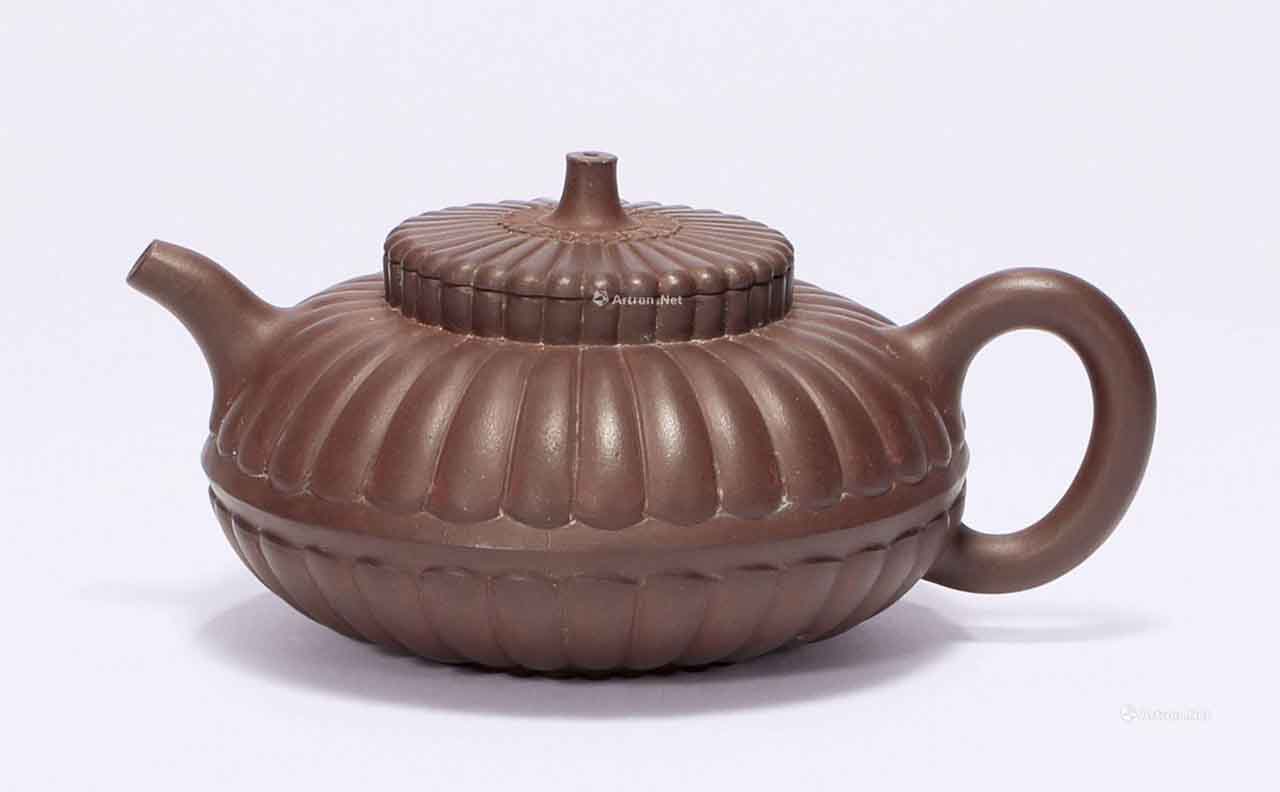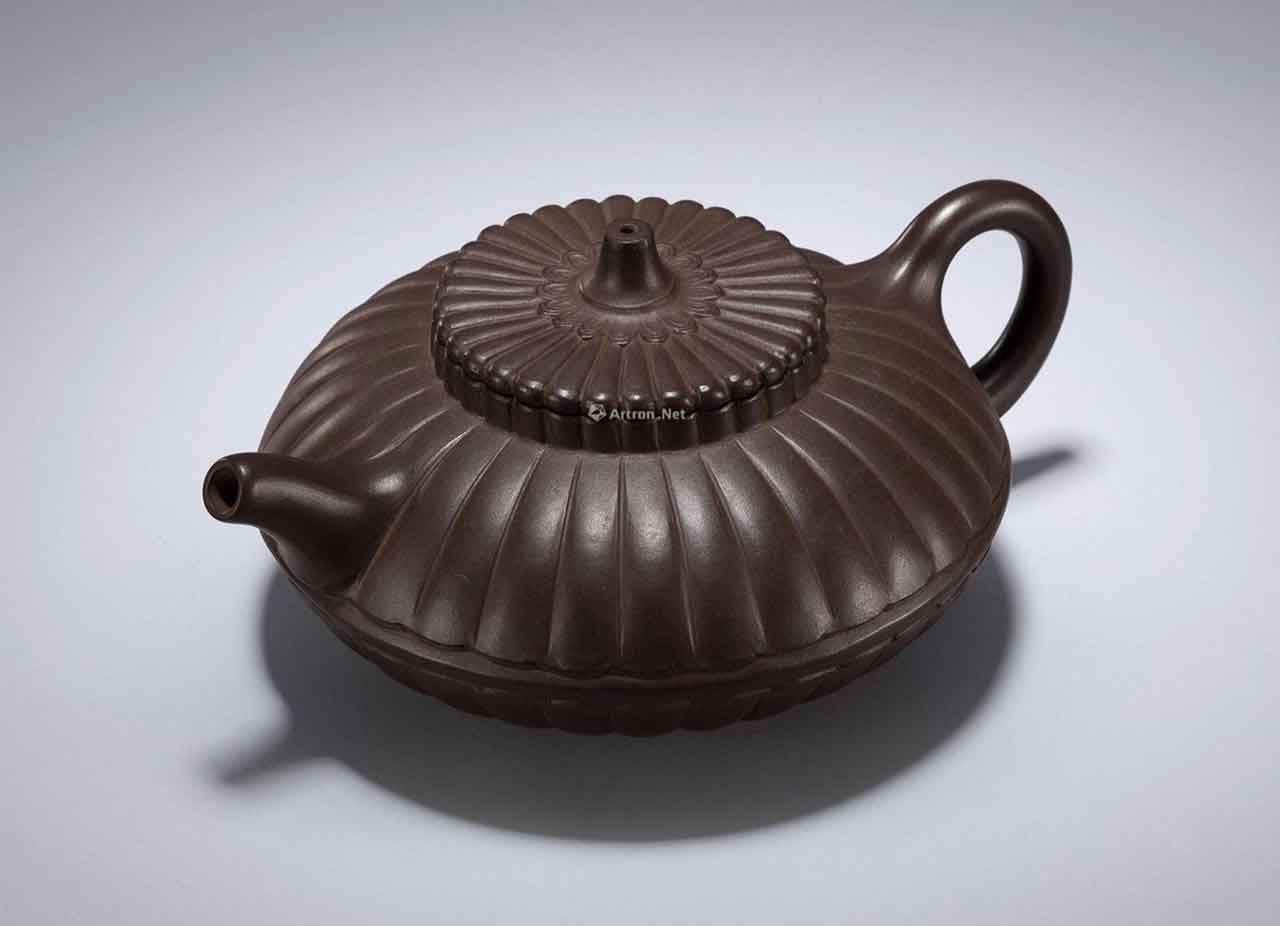 菊瓣壺型紫砂器,屬於盛清時期的宜興壺型,曾受到雍正皇帝的喜愛並下旨依樣燒製官窯瓷器。