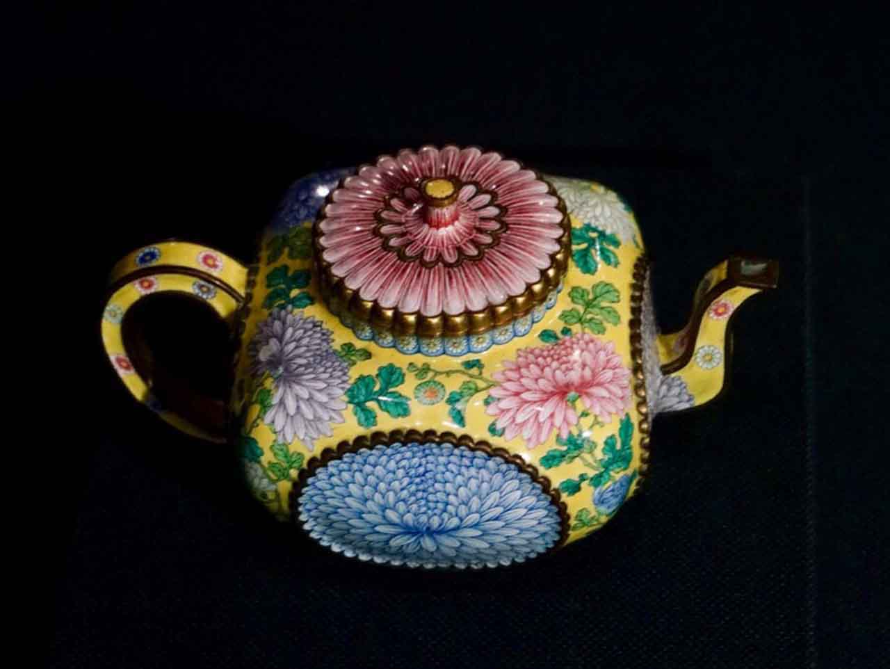 所以彩釉壺的出現主要是紫砂茗壺受到宮廷與皇室成員的喜愛所造成的,這種宮廷習氣也引導著民間風尚,諸多名家多有製作。從康熙朝開始至乾隆,乃至嘉慶前期的一百多年間,琺瑯彩、粉彩、爐鈞釉、描金、泥繪、貼花、堆雕等等裝飾工藝悉數登場,包裹著本來素雅的紫砂壺。