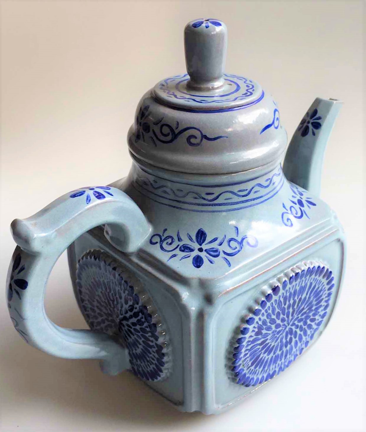 乾隆鈞釉四方折角藍彩菊瓣紫砂壺