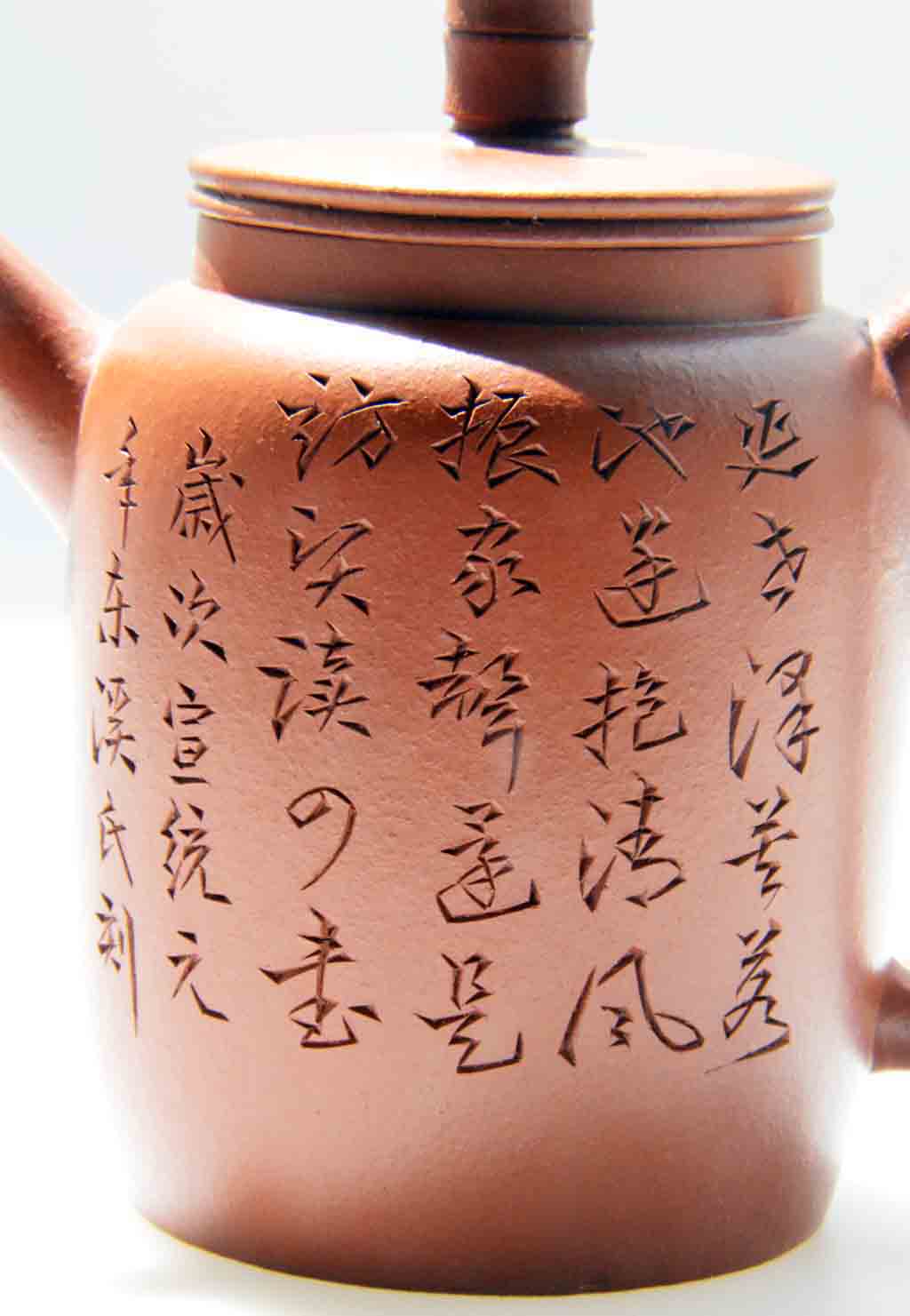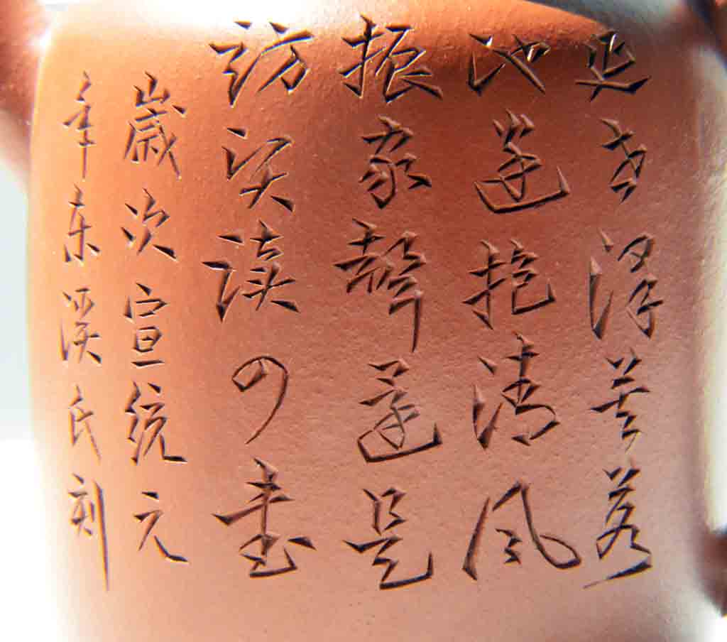 「藝古齋」是趙松亭(1853~1934年)在1905年創立的店號,其集製坯、書畫、鐫刻諸藝於一身,號九齡,刻款常署「支泉、東溪、東溪氏、東溪生、東溪漁隱」等,是晚清至民國初年的著名紫砂藝人、實業家。