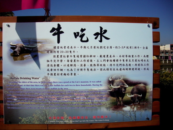 據當地耆老表示,早期之月眉池對劉宅古厝,約2-3戶就有一頭牛,全盛時期約有20-30頭牛。