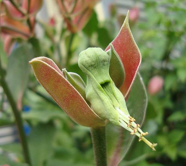 大戟科,引進不久的外來種植物,夏天開花,花苞就像一隻小鳥,因此,又有“小鳥花”之稱!公花細小,母花抱蛋,可以非常容易辨識。