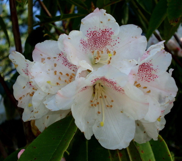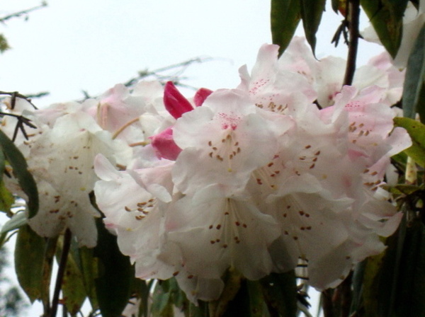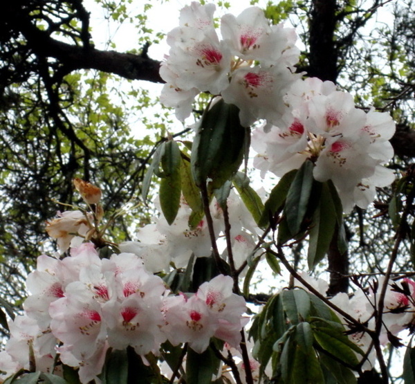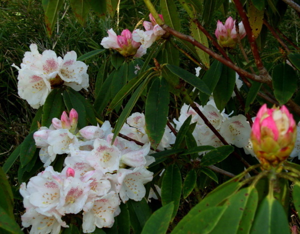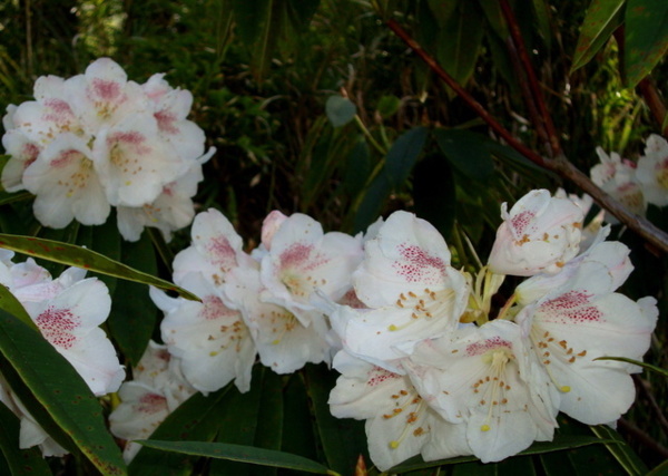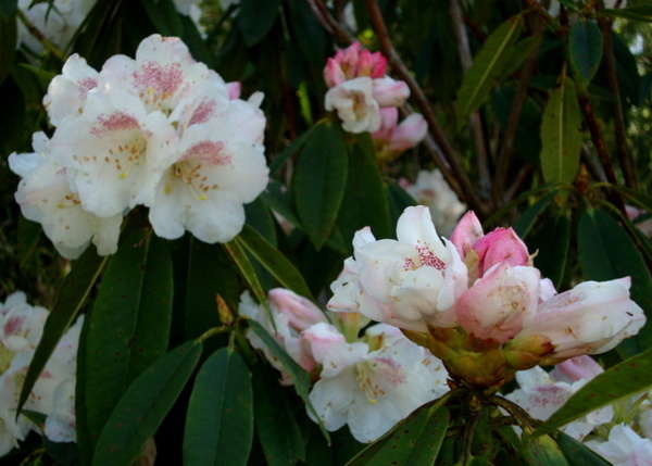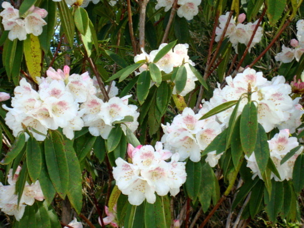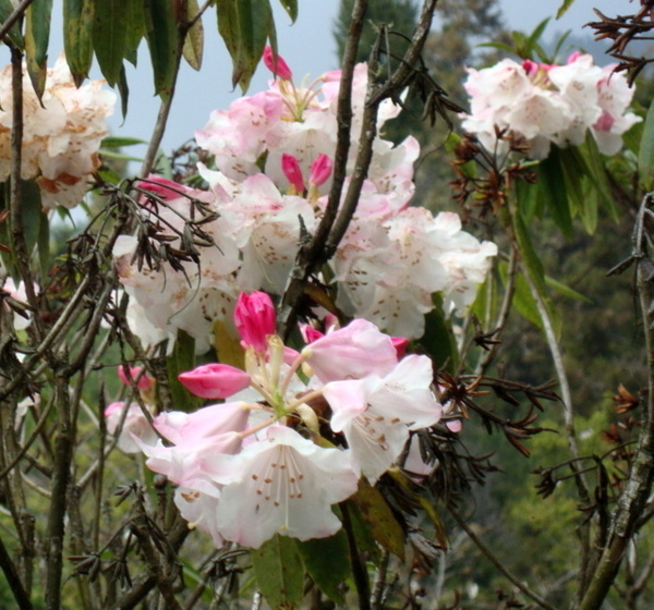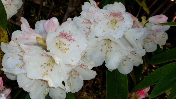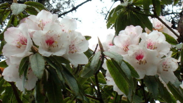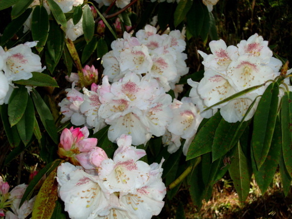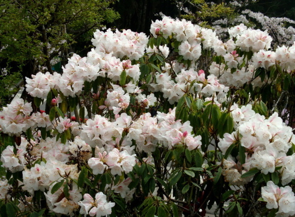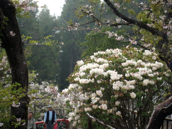 每年三月吉野櫻盛綻,森氏杜鵑也進入開花期,花苞帶著粉紅,花開後則是白裡透紅,阿里山可是台灣最方便的賞花去處。森氏杜鵑幾乎遍布阿里山全園,今春櫻花開得晚,杜鵑一樣晚開,遊步園內步道隨時有與杜鵑相遇的驚喜。