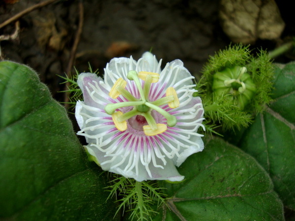 那張百香果花,正確來說是毛西番蓮,又稱為野百香果、龍珠果、小時計果,屬草質藤本植物。