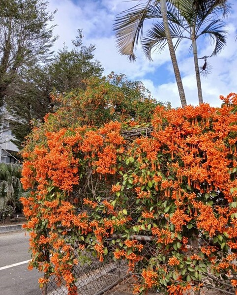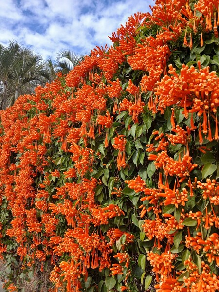 「炮仗花」的花語是 “富貴吉祥”,滿牆如怒放的焰火,象徵好日子紅紅火火!