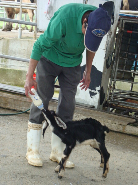 餵食小羊 喝奶 。如果是 母羊,要跪著喝呢。