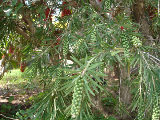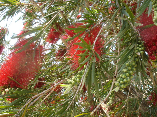 而紅瓶刷子樹的枝是上揚.紅刷子朝上.