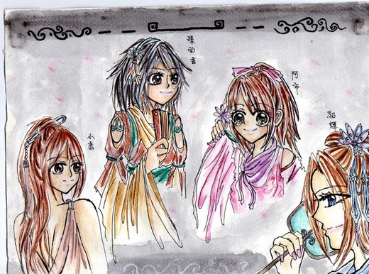 阿香~偶爾也該有讀書的感覺~所以就畫拿扇子--有點男性化了!