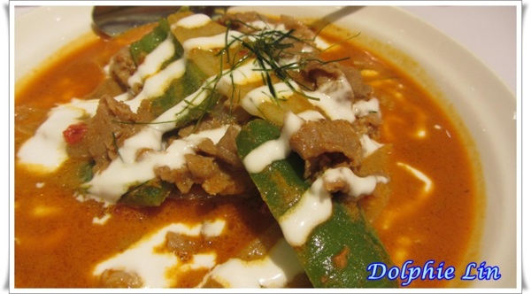 馬莎蔓豬肉280元,聽說牛肉比較好吃,但是豆豆不吃牛,這道菜我唯一不敢吃得應該是上面的奶,豆豆都會把它挖開,這道菜算是重口味料理,有青椒、肉片,還有特殊的瑪莎蔓咖哩,下飯的好料理。