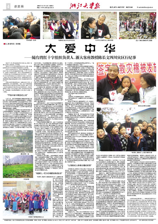 (浙江大學報) 大愛中華--隨台灣紅十字組織負責人 浙大客座教授陳長文四川災區紀事 (五)