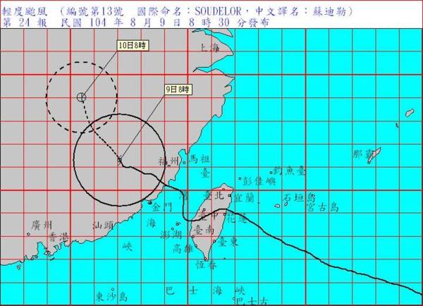 (一)第201513號颱風於8月6日11時30分發佈海上颱風警報,同日20時30分發佈陸上颱風警報;8日4時40分左右中心由花蓮秀林登陸,11時由雲林臺西出海;9日8時30分解除颱風警報 ,此颱風造成臺灣近10年來嚴重災害