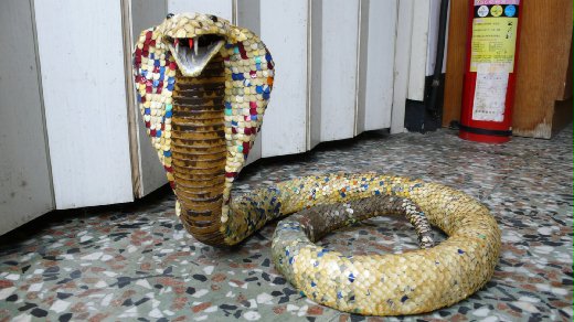 有記憶的就是在那一年,那一年還正是青春年少的我,最喜歡與同學、鄰居同伴們,常會前往稻田、海邊或是上山郊遊烤肉的群聚遊樂活動。就有那麼一年的那一次,在溪流岸邊正在尋搬石塊,準備架當烤肉坑,哇~~~蛇!有蛇!有蛇!同學同伴們聽到我的撕吼狂叫聲全都跑了來,眼鏡蛇ㄟ,牠是一尾蠻長也蠻壯的眼鏡蛇,這尾眼鏡蛇牠神勇,見到我也不跑,竟還對我示出兇猛、兇惡的呼呼聲,牠可知,我可是讓這模樣嚇得頭皮整個發麻、全身也隨之酥麻起來,手臂上的雞母皮更是迅速的竄冒出﹒﹒﹒﹒﹒
