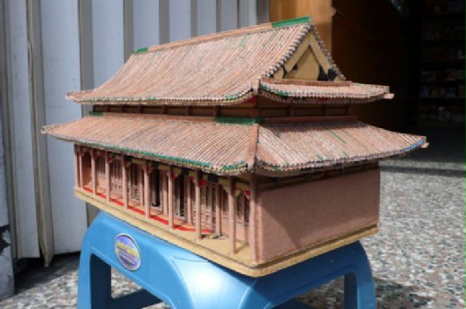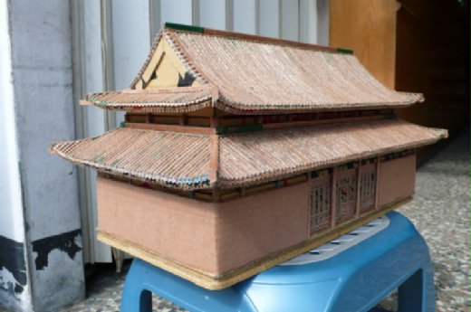 華哥在廢紙箱堆中紙雕紙塑創作