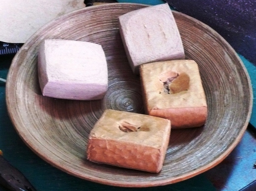 一塊塊完整的臭豆腐,炸好後中間弄個洞,醬料就往裡面塞。