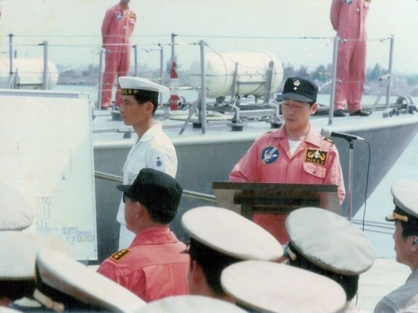75年擔任副大隊長【背後是1號魚雷快艇】