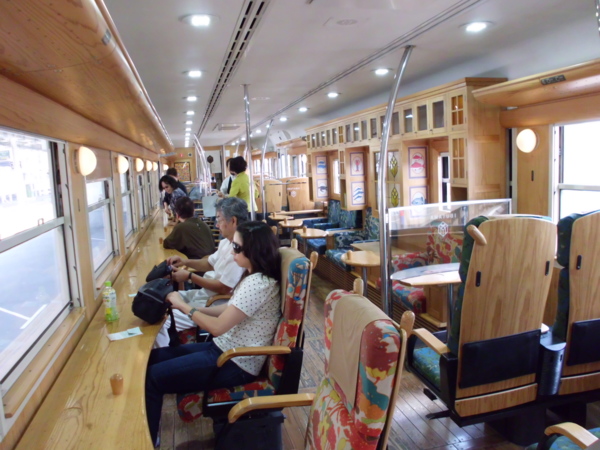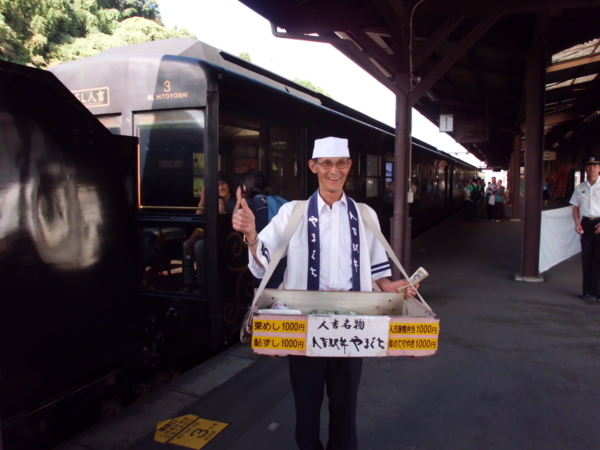 最後搭乘SL人吉蒸汽火車,連結人吉至熊本,途中停靠站還親眼看到剷煤燃燒的過程,真是令人大開眼界,觀光列車之旅既豪華又舒適,且車上服務人員提供火車標識及站務人員帽子供乘客拍照,服務相當的貼心。