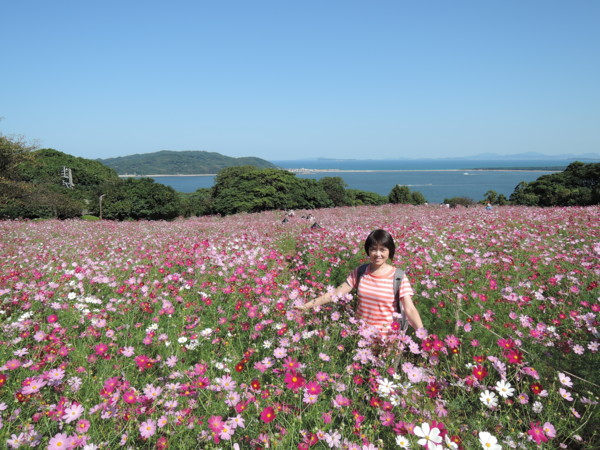 今天原訂的行程是要去福岡市的大濠公園、海鷹城、福岡蛋、福岡塔等處遊玩,因為昨天在阿蘇山上散步時,遇到一對年輕的大陸夫妻,在福岡唸書,知道我們今天最後一天的行程,認為沒有特別可看之處,建議我們去能古島,就這樣昨天晚上上網查了能古屋的旅遊資訊,知道現在是大波斯菊盛開的季節,所以決定更改行程前往能古島。