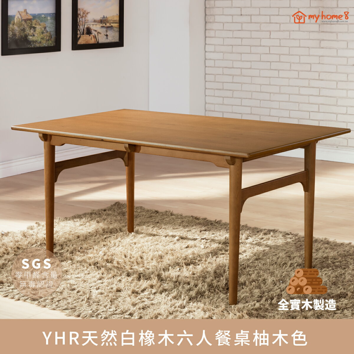 【超實用】【myhome8居家無限】YHR天然白橡木全實木六人位餐桌 經典產品開店送禮推薦