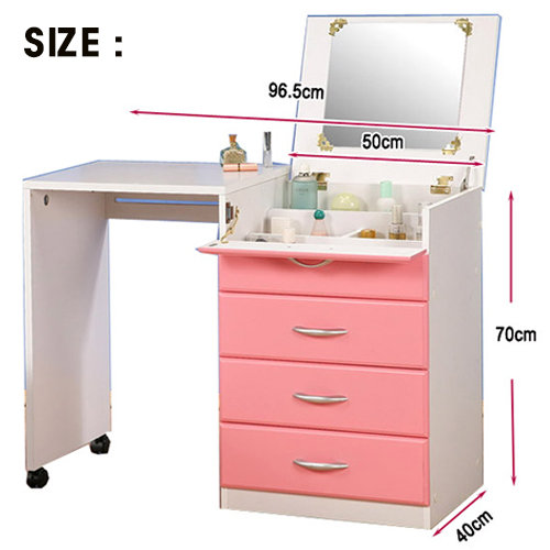 日本設計、台灣精製並外銷日本的通販商品-日式多用伸縮化妝書桌櫃,日系vivid粉彩色系、桌與櫃兩用設計,100%的日式血統,甜美又實用!?
