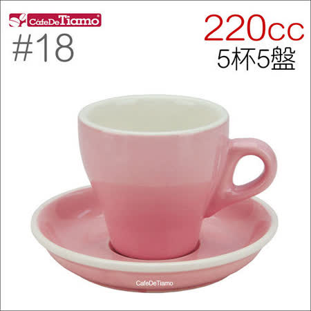 Tiamo 18號鬱金香大卡布杯盤組(雙色) 220cc 五杯五盤 (粉紅) HG0852PK