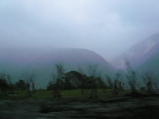 地圖上路線畫的筆直,但實際上愈往高山走,路況愈曲曲折折,幸好到宜蘭大同還來得及加滿油,那時已深入原住民部落了.天空依然下著小雨,聽天氣預報說今明應該是好天氣,但山區下午時分經常要下雨.果然不一會兒還起了濃霧,一路上經霧燈和近光燈全開,卻只有一公尺的視線,而且還得循著山路的黃線才行,兩邊的山壁和懸崖不見蹤影,僅管車子搖晃,山路難行,我的胃已在翻攪,時間也過了一.二小時,但沒人敢吭聲. 兩隻娃此時在躺平的車後座舒服的睡著,否則醒著的他們會讓我們更難以招架,農場的連絡人員剛好撥電話來詢問今晚我們是否住宿. 這時窗外冷颼颼的空氣不斷湧進來.現在已是半夜六點了,我和老公其實真想打道回府,但車子就這麼卡在霧裡進退不得,前方的路不知還有多久,但走過的路卻已遠矣. 以前大隻娃曾經告訴我:『媽媽我好想躺在軟綿綿的雲裡喔!』,要不是姐姐此刻已睡著,否則她將知道躺在雲裡,其實沒想像中的有趣,反而更茫然. 好不容易,終於遇見前方的車子,有他們的帶路,我才得以安心歇會兒,讓攪動的腸胃舒服些,也讓一路專注的老公可以放鬆些. 這樣的山路,我自認開車技術很難達成.