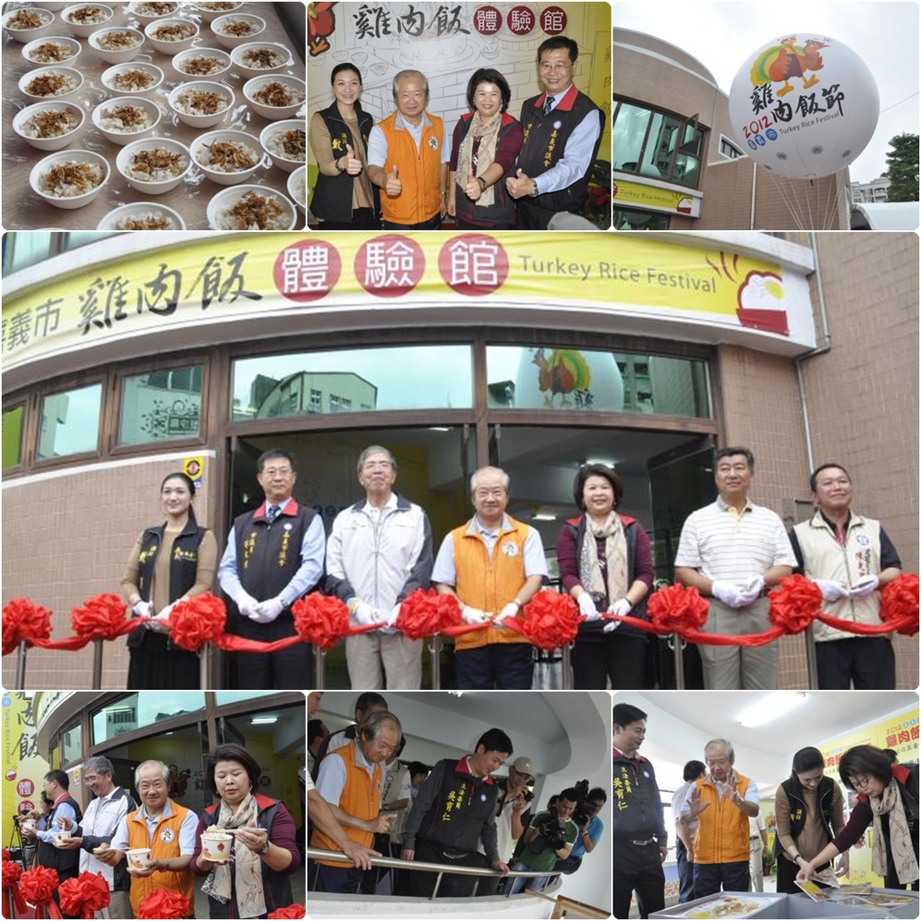 「2012嘉義市雞肉飯節」今(1)日正式展開,設於中正公園展示館的「雞肉飯體驗館」舉行開幕啟用典禮,由副市長李錫津、立委吳育仁、市議員傅大偉、張秀華、戴寧等人共同主持,日本橫濱有拉麵博物館、美國有籃球館,嘉義市則有全台首座「雞肉飯體驗館」,嘉義市雞肉飯已經有超過一甲子的歷史,雖然雞肉飯全省四處可見,但沒有冠上「嘉義市」就不算正宗的雞肉飯,舉辦活動是讓「嘉義市走出去、世界走進來」的好方法,藉由一年一度的嘉義市雞肉飯節活動,要讓大家認識嘉義市的特色美食與文化,歡迎大家來體驗館了解雞肉飯的歷史、品嚐最正宗最美味的雞肉飯。