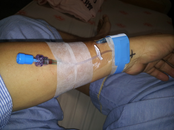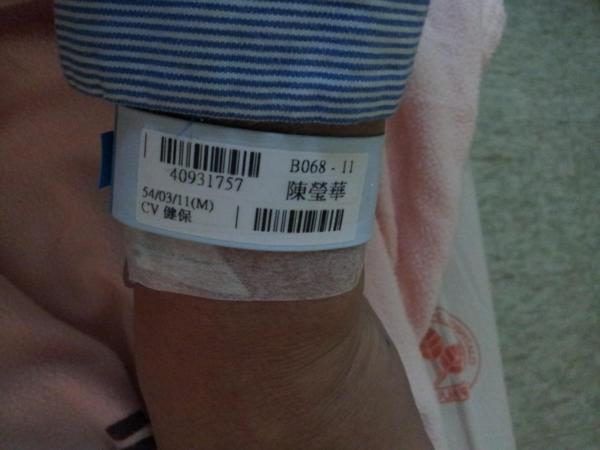 接著護理師要我去量身高體重,然後在我的手上綁上名牌做為這三天識別用並掃描開檔,接著手,腳把脈並在脈博上做上記號,以便術後檢查脈博是否是常跳動,抽血並留下針頭等明天做手術時方便使用....待續!