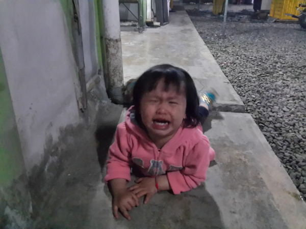 小妹妹也想要玩結果走過來時不小心跌倒了